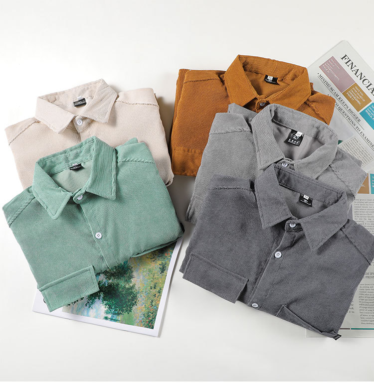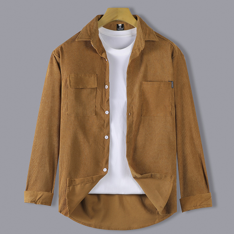 십대 긴팔 셔츠 가을 디자인 센스 솔리드 컬러 포켓 캐주얼 셔츠 핸섬 턴어라운드 패션 재킷스토어 가기