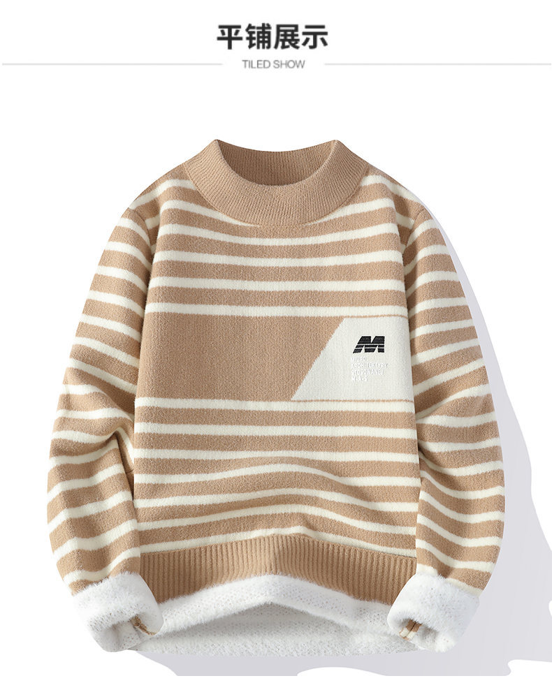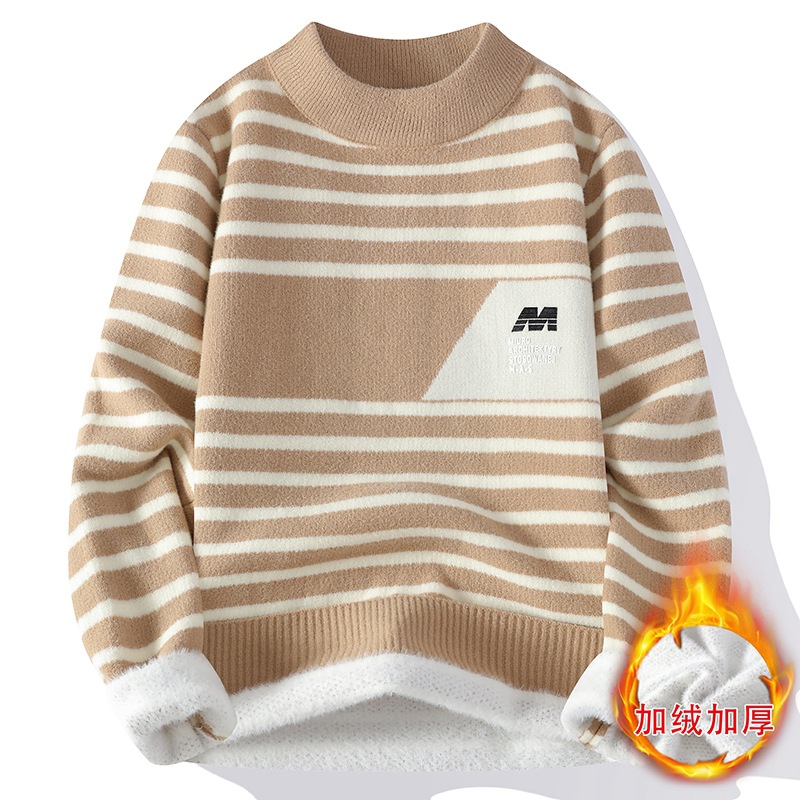 국경 간 대외 무역 세대 AliExpress 폭발 [신규] 2024 가을과 겨울 벨벳 니트 스웨터 남성베이스 셔츠
