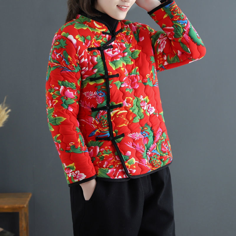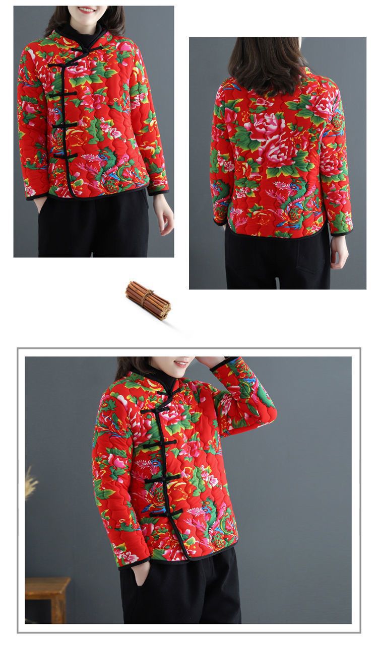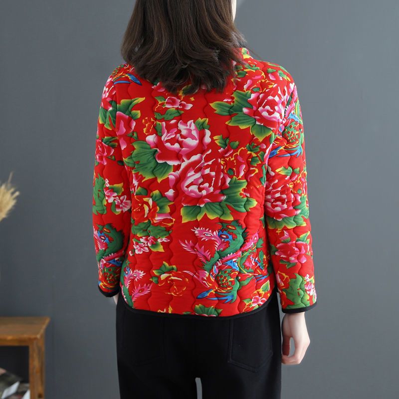 여성과 여성을위한 동북 큰 꽃 면화 패딩 코트 두꺼운 민족 스타일 서양 스타일 국가 스타일 코튼 패딩 코트 유행 코튼 패딩 코튼 패셔너블 코튼 패딩 코트 한푸 입기 난초