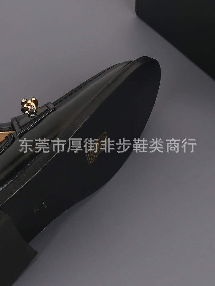 탑 플레이트 24a 금속 체인 동백 배지 로퍼 여성용 Cowhide 슬립 온 영국 가죽 신발 플랫 힐 신발스토어 가기