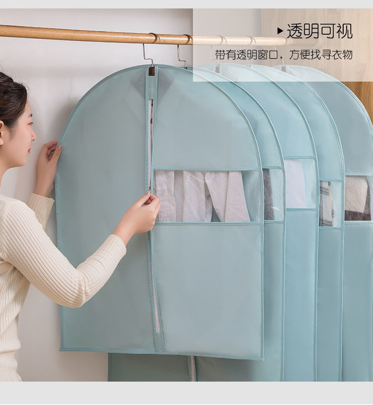 부직포 의류 커버 통기성 방습 코트 모피 세트 커버 매달려 먼지 가방 투명 빨 수있는 파란색 커버스토어 가기