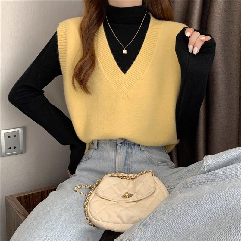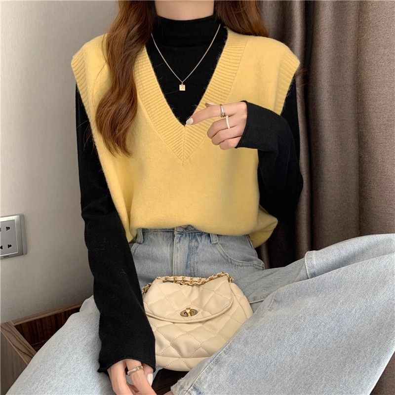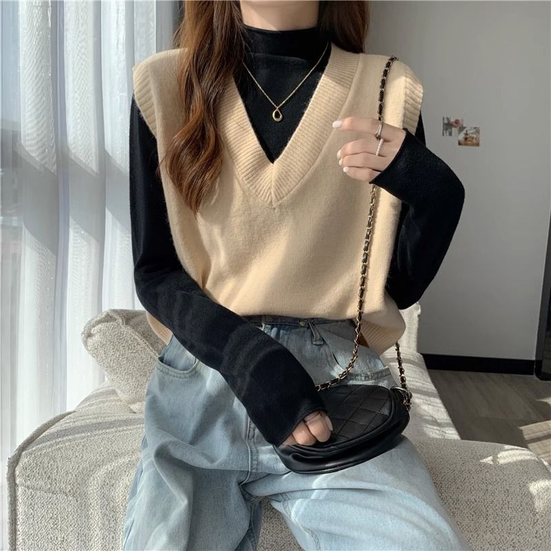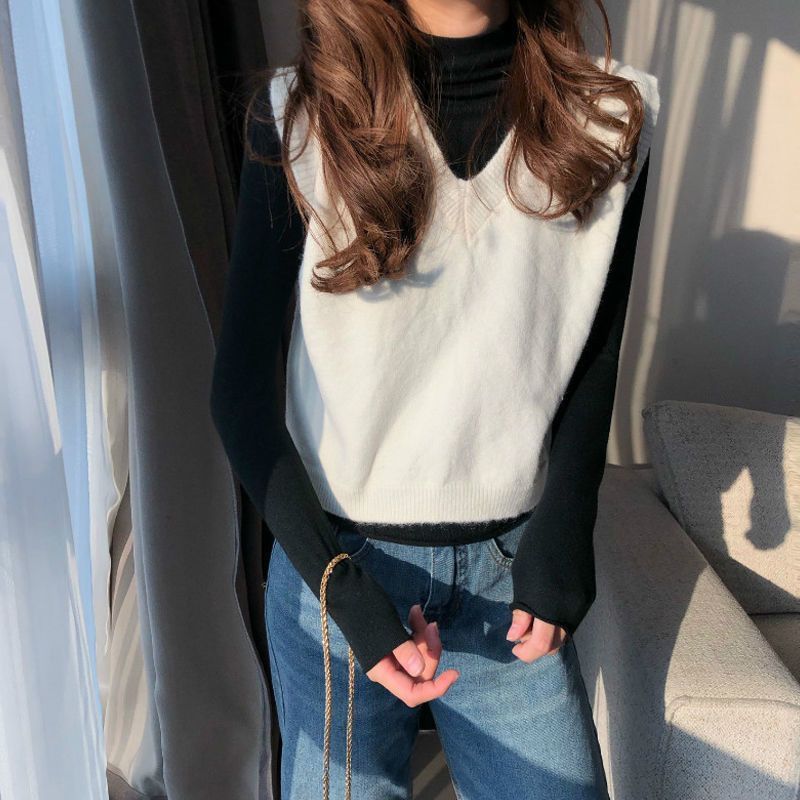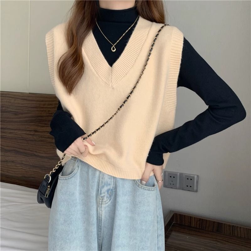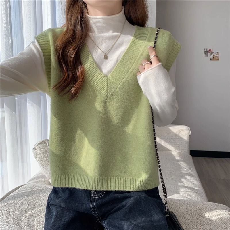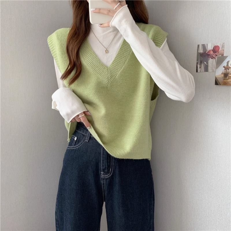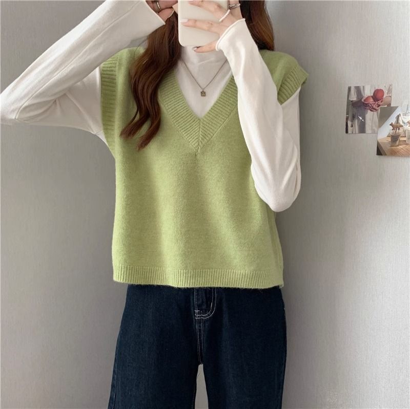 민소매 니트 조끼 여성 봄과 가을 얇은 V-Neck 느슨한 짧은 외부 조끼 입고 조끼로 쌓인 조끼스토어 가기