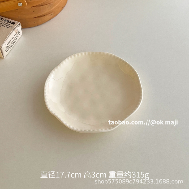 • 7inch 비즈 엣지 얕은 접시 - 크림 화이트