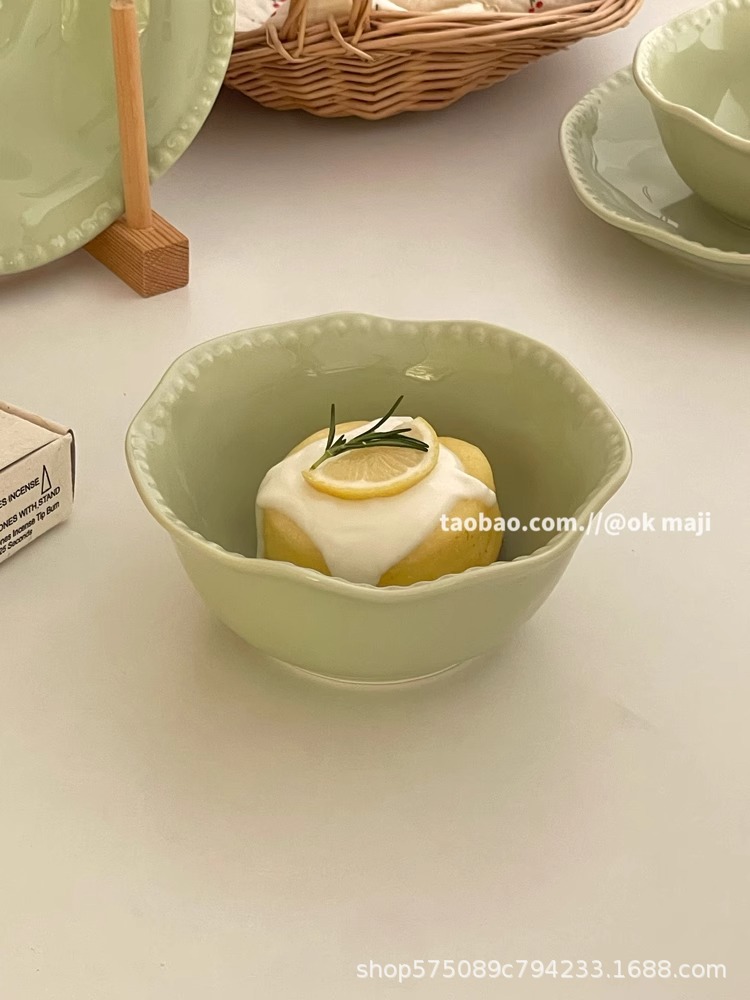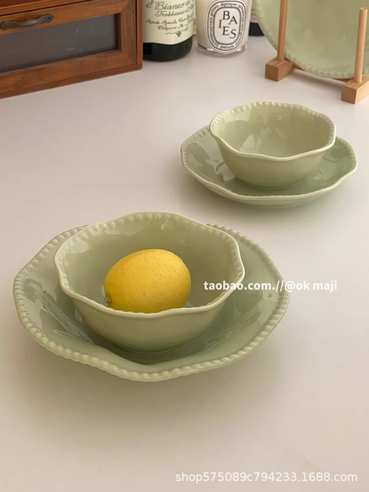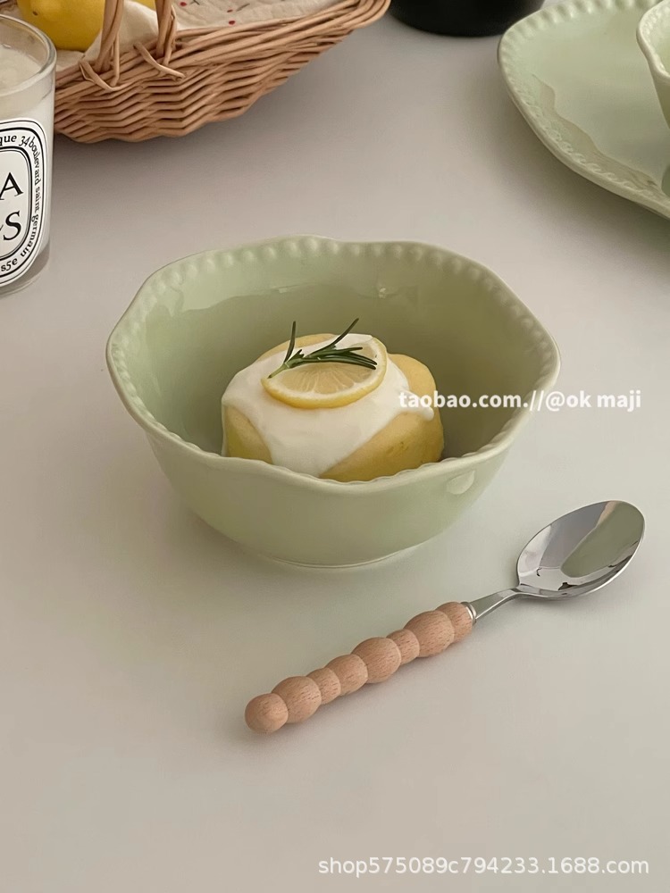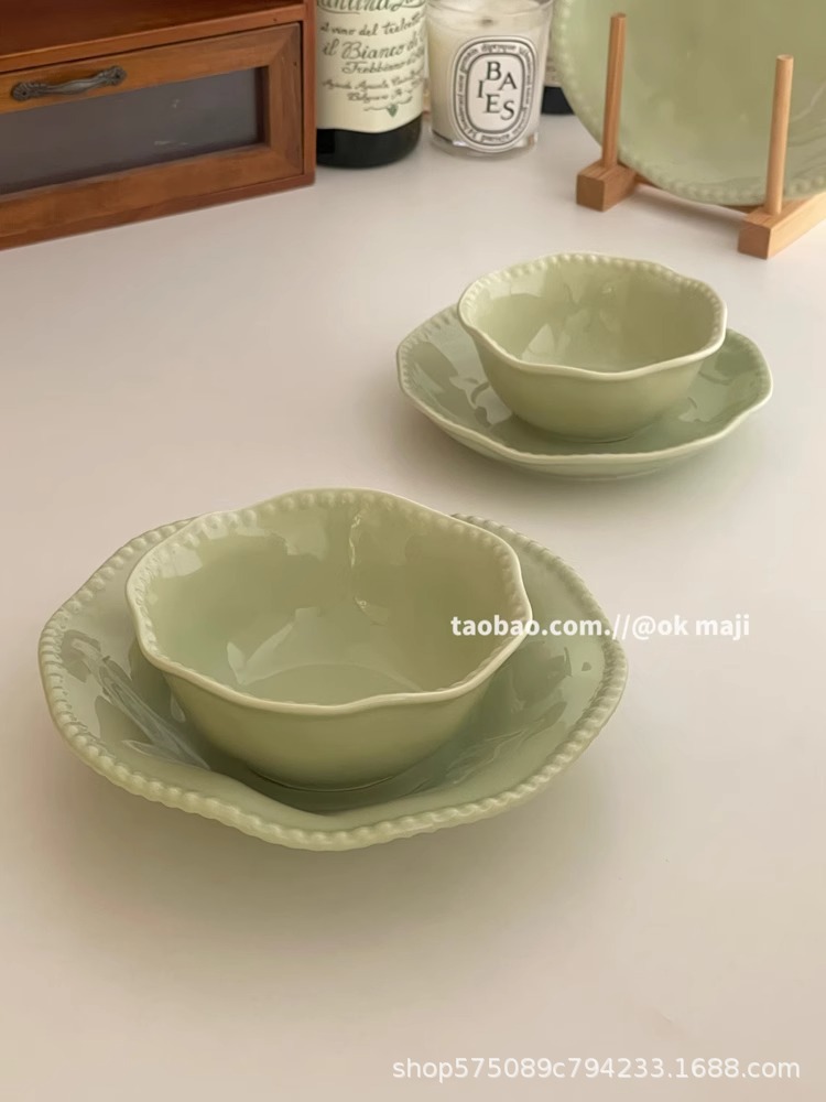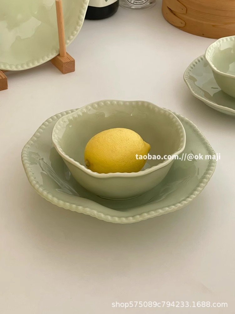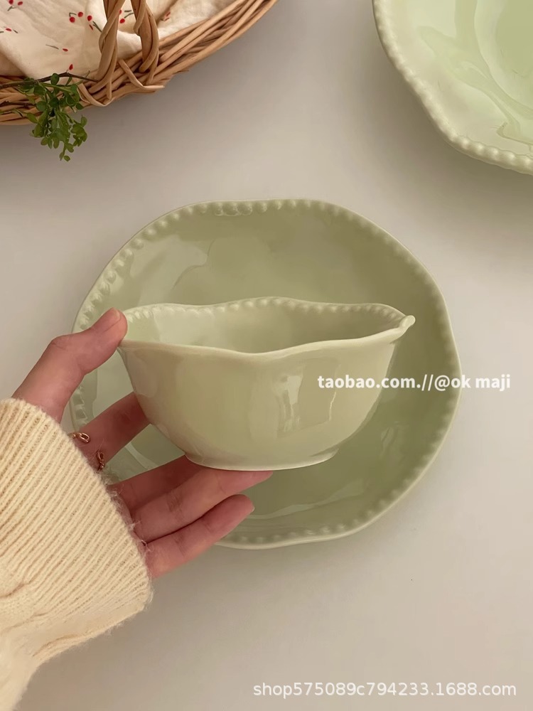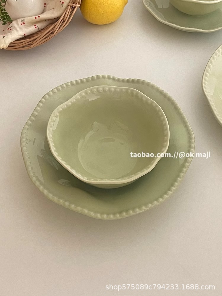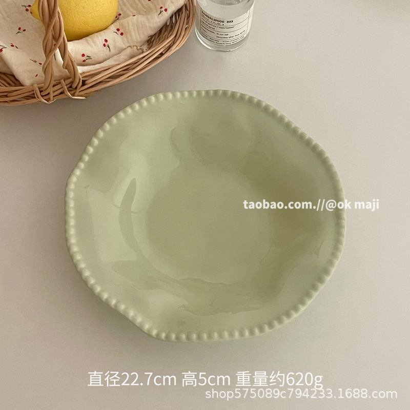 • 7inch 비즈 엣지 얕은 접시 - 민트 그린