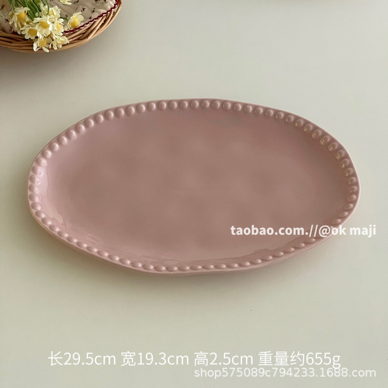 • 11.6inch 비즈 엣지 피쉬 플레이트 - 크림 화이트