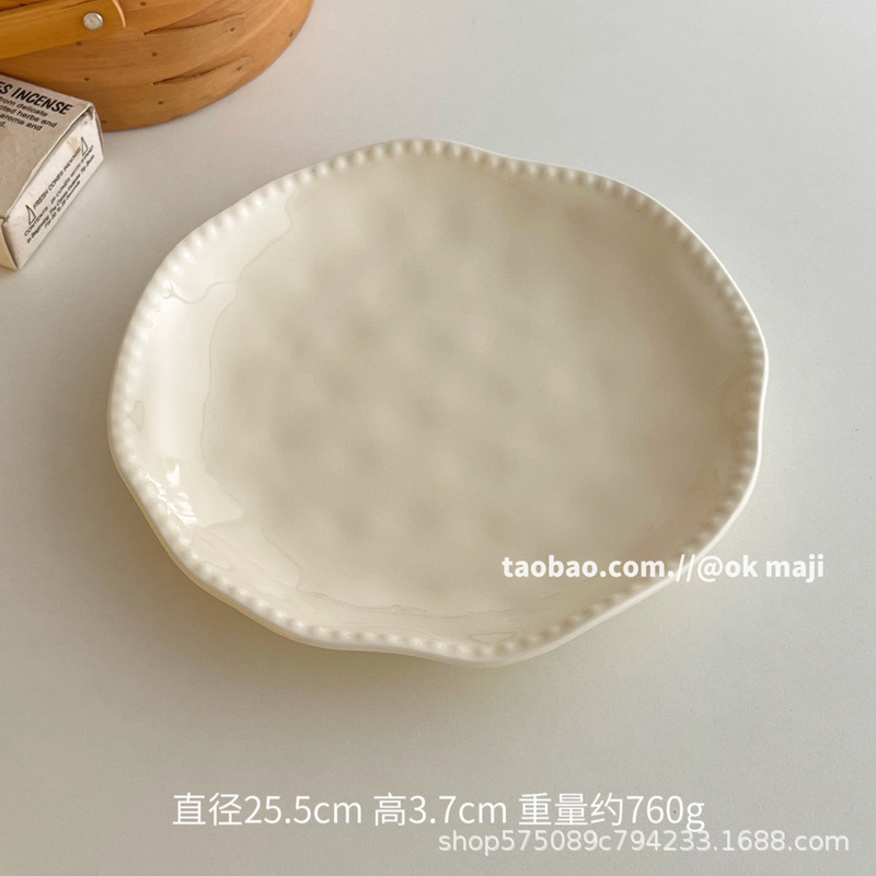 • 10inch 비즈 엣지 얕은 접시 - 크림 화이트