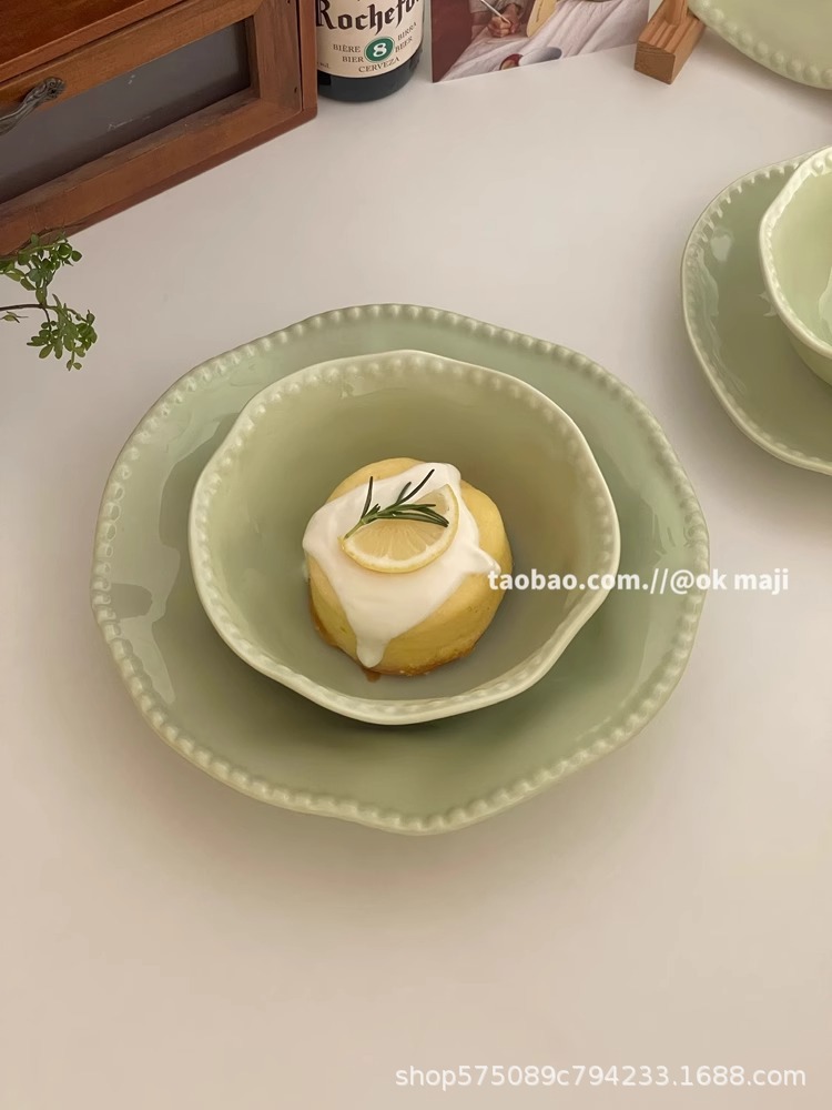 • 10inch 비즈 엣지 얕은 접시-민트