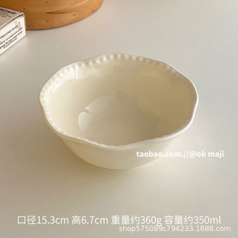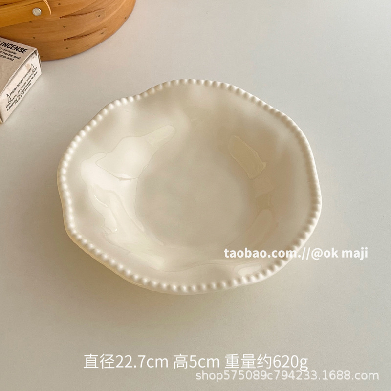 • 9inch 비즈 엣지 딥 플레이트 - 크림 화이트