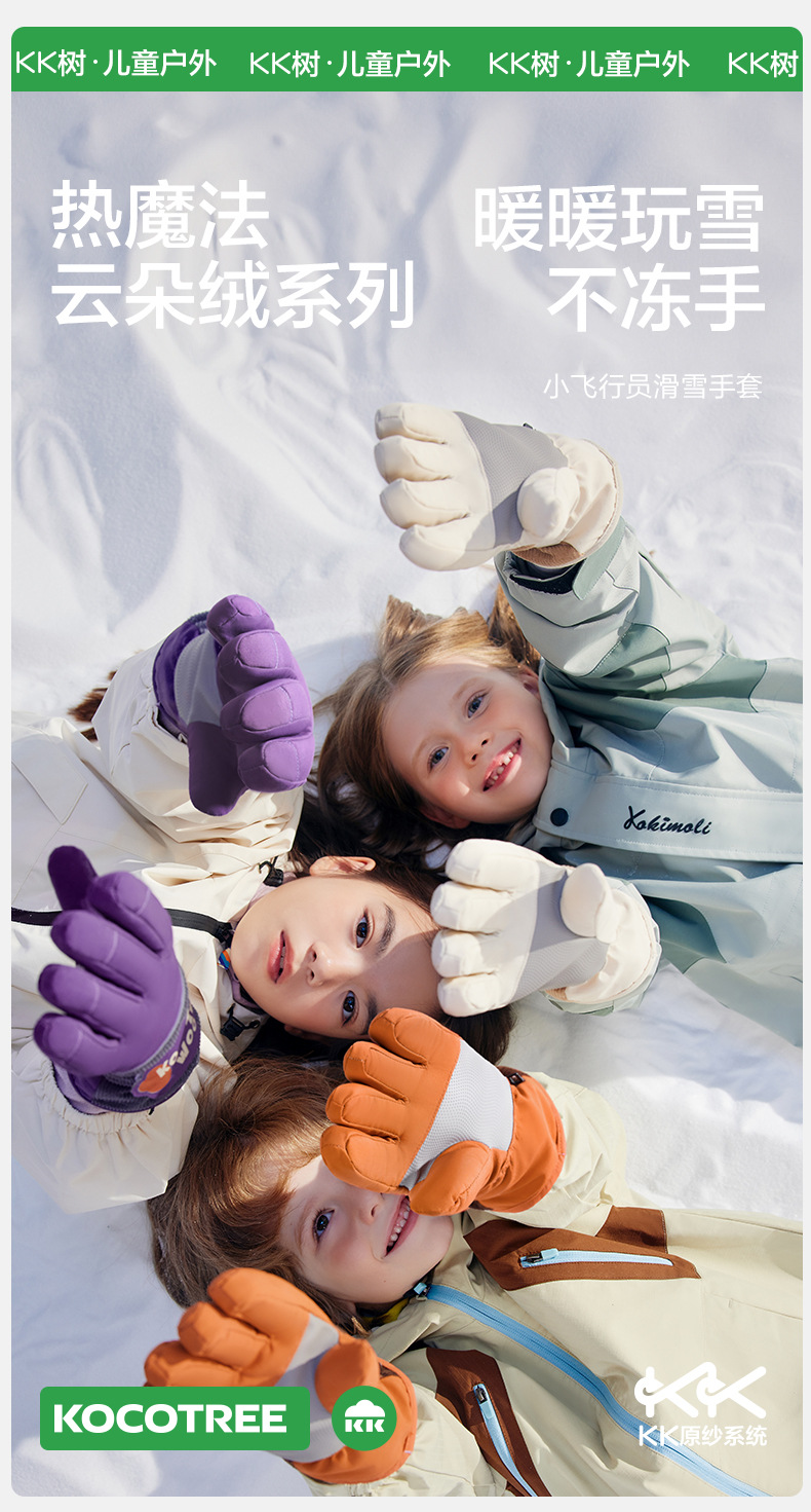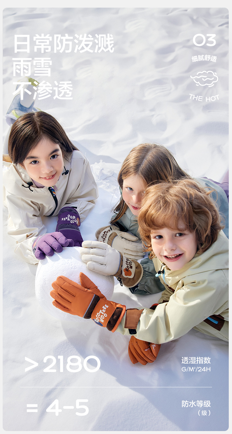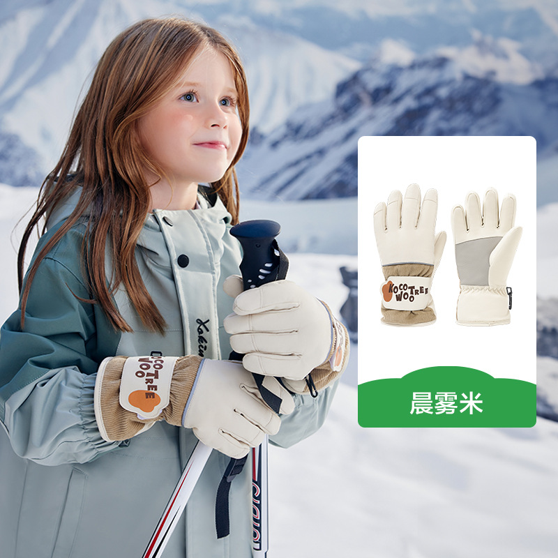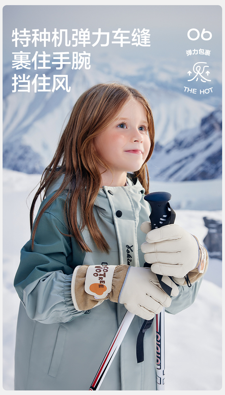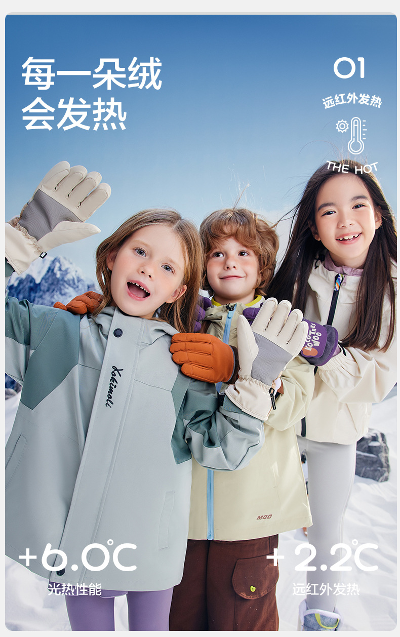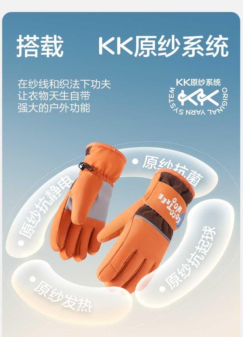 KK 트리 어린이 스키 장갑 방수 방풍 겨울 기모 두꺼운 자체 난방 따뜻한 5 손가락 미끄럼 방지