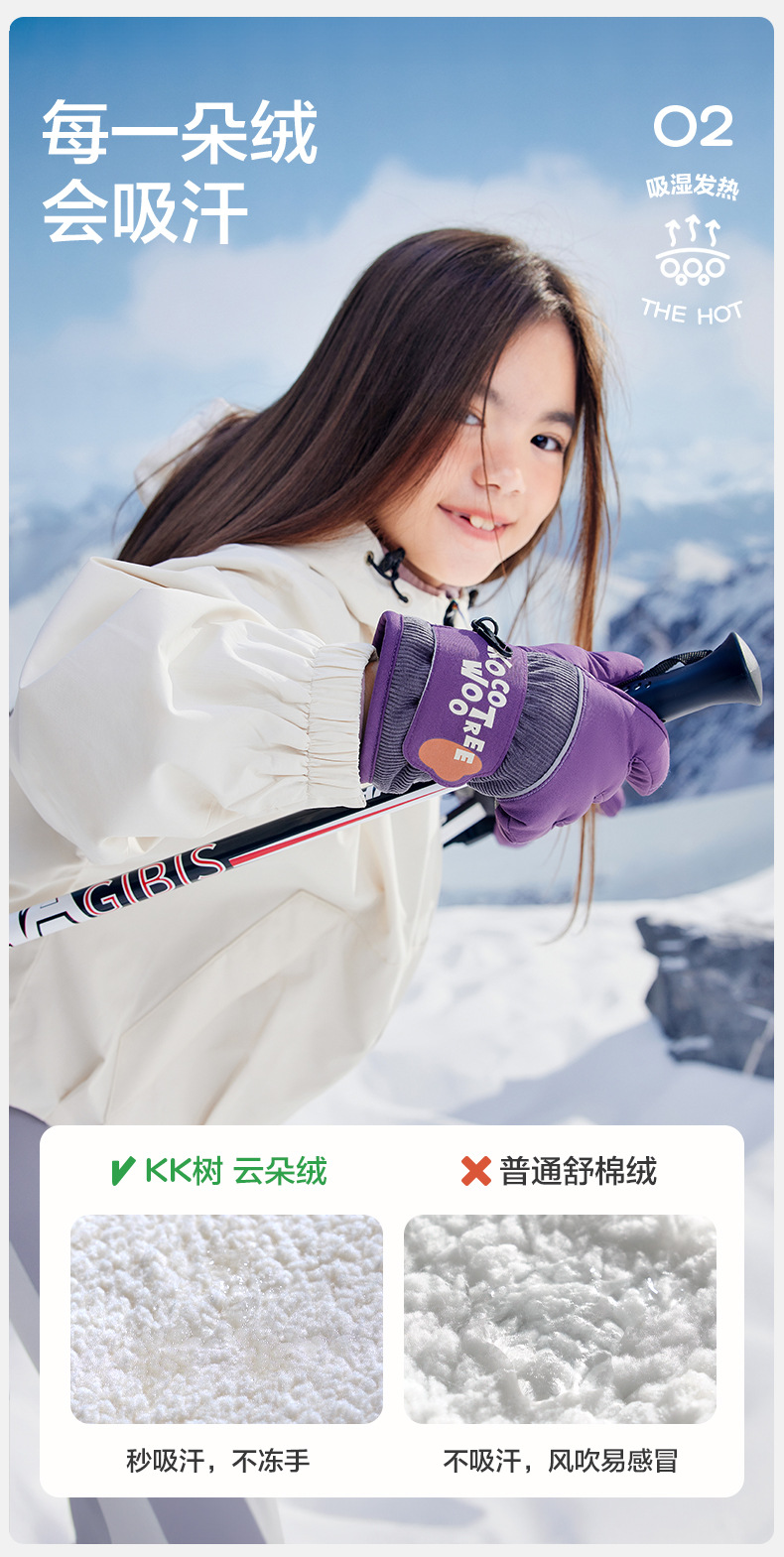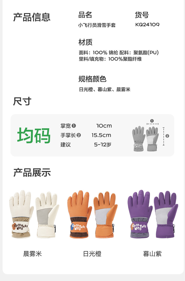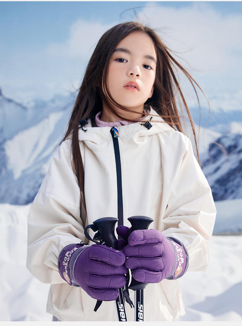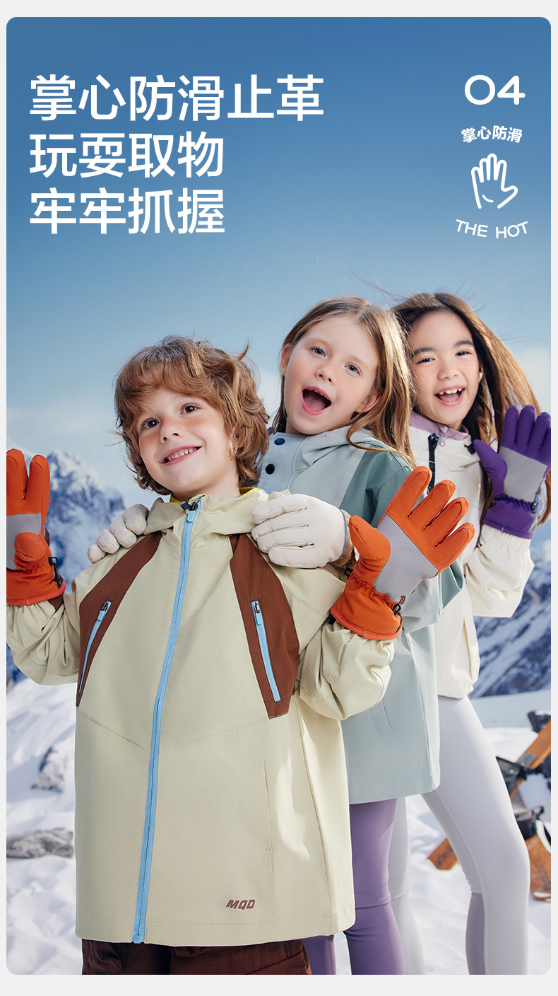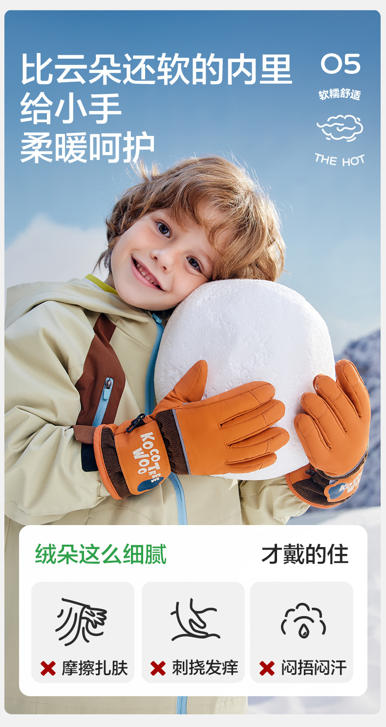 KK 트리 어린이 스키 장갑 방수 방풍 겨울 기모 두꺼운 자체 난방 따뜻한 5 손가락 미끄럼 방지