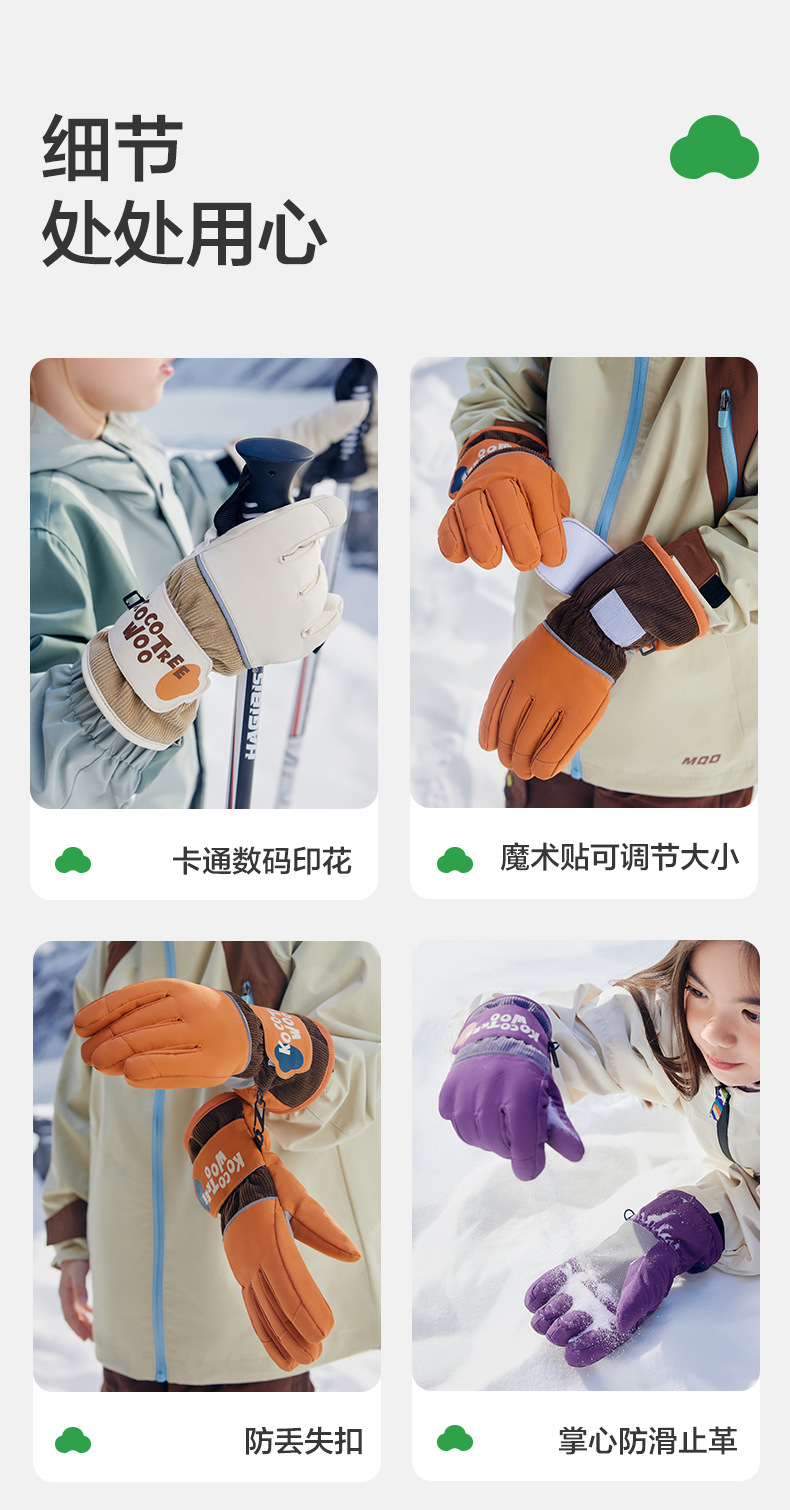KK 트리 어린이 스키 장갑 방수 방풍 겨울 기모 두꺼운 자체 난방 따뜻한 5 손가락 미끄럼 방지스토어 가기