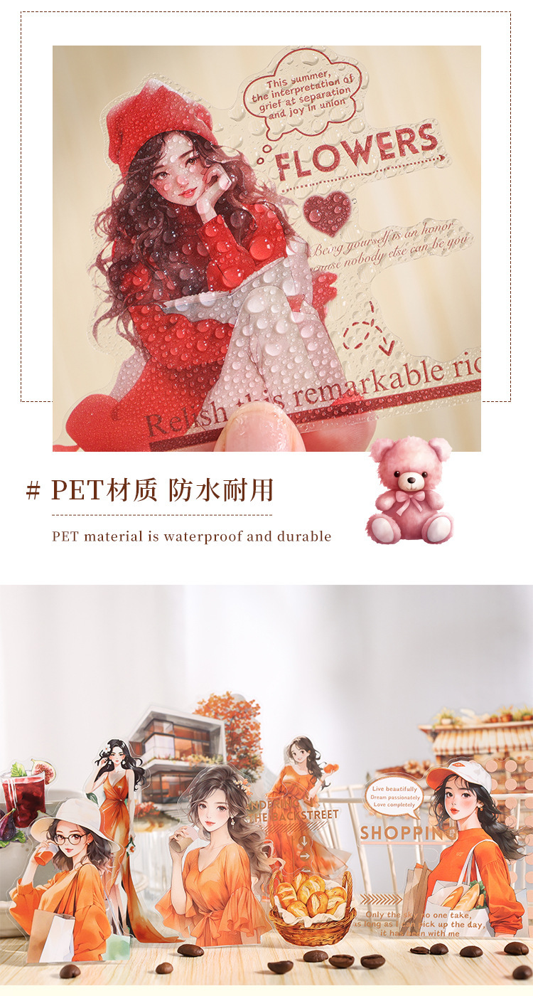 오페라 투명 방수 애완 동물 스티커 일기 스티커 레트로 스트리트 뷰 특수 오일 그림 소녀 스티커의 우아한 팬텀