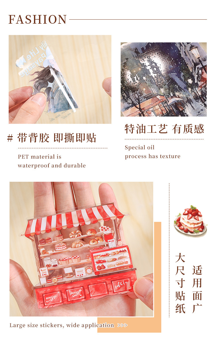 오페라 투명 방수 애완 동물 스티커 일기 스티커 레트로 스트리트 뷰 특수 오일 그림 소녀 스티커의 우아한 팬텀스토어 가기
