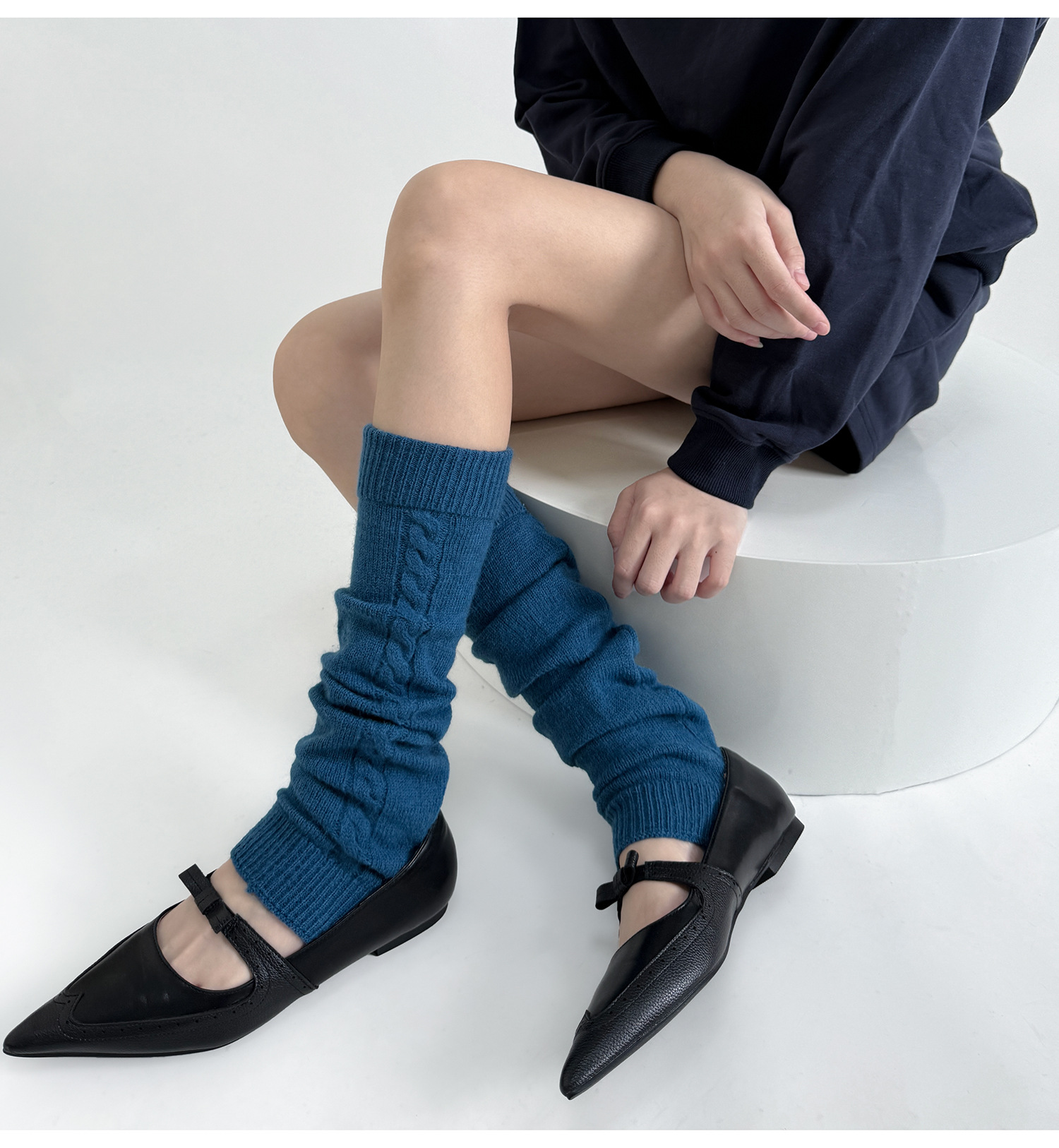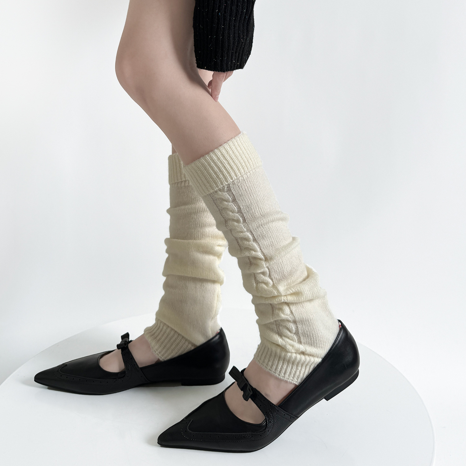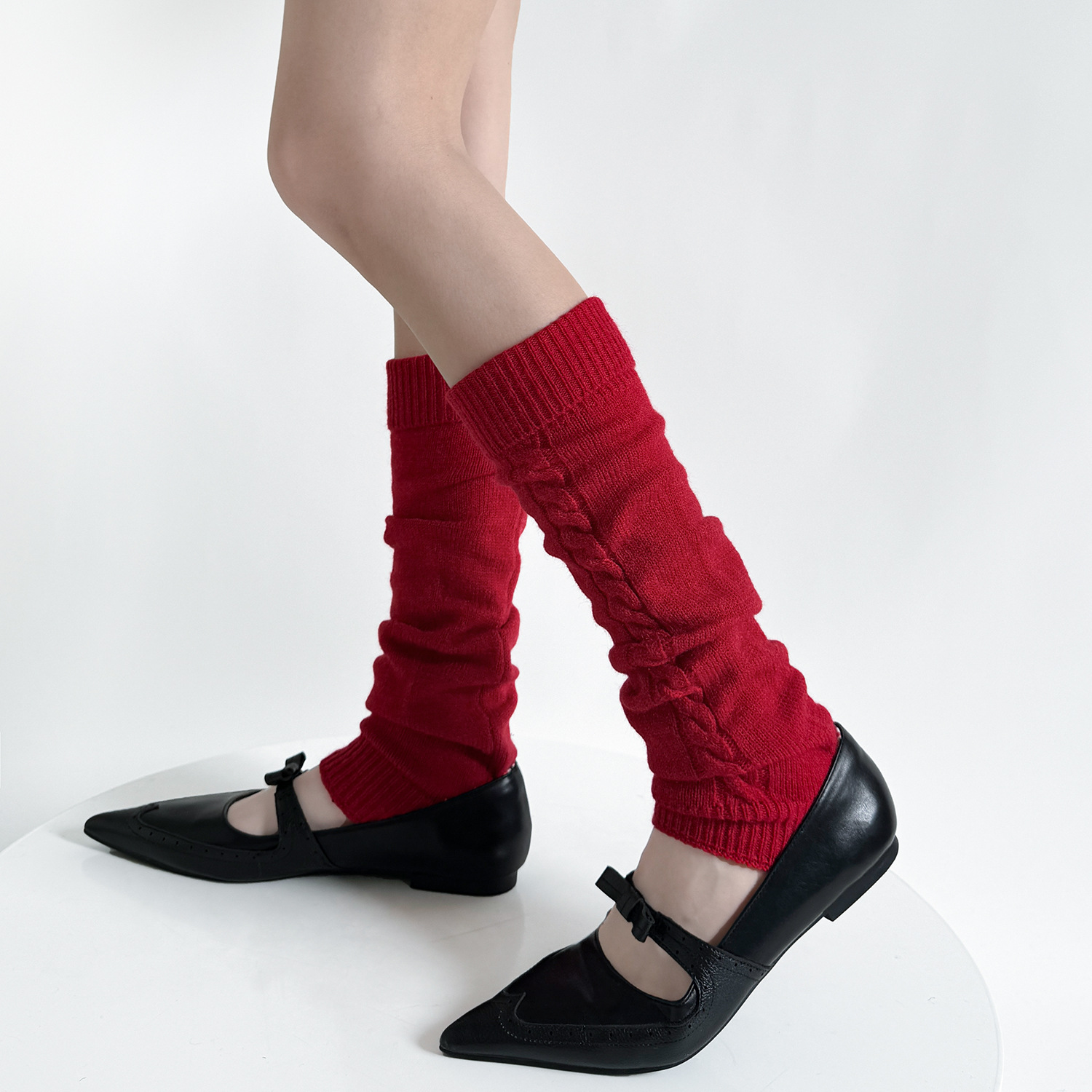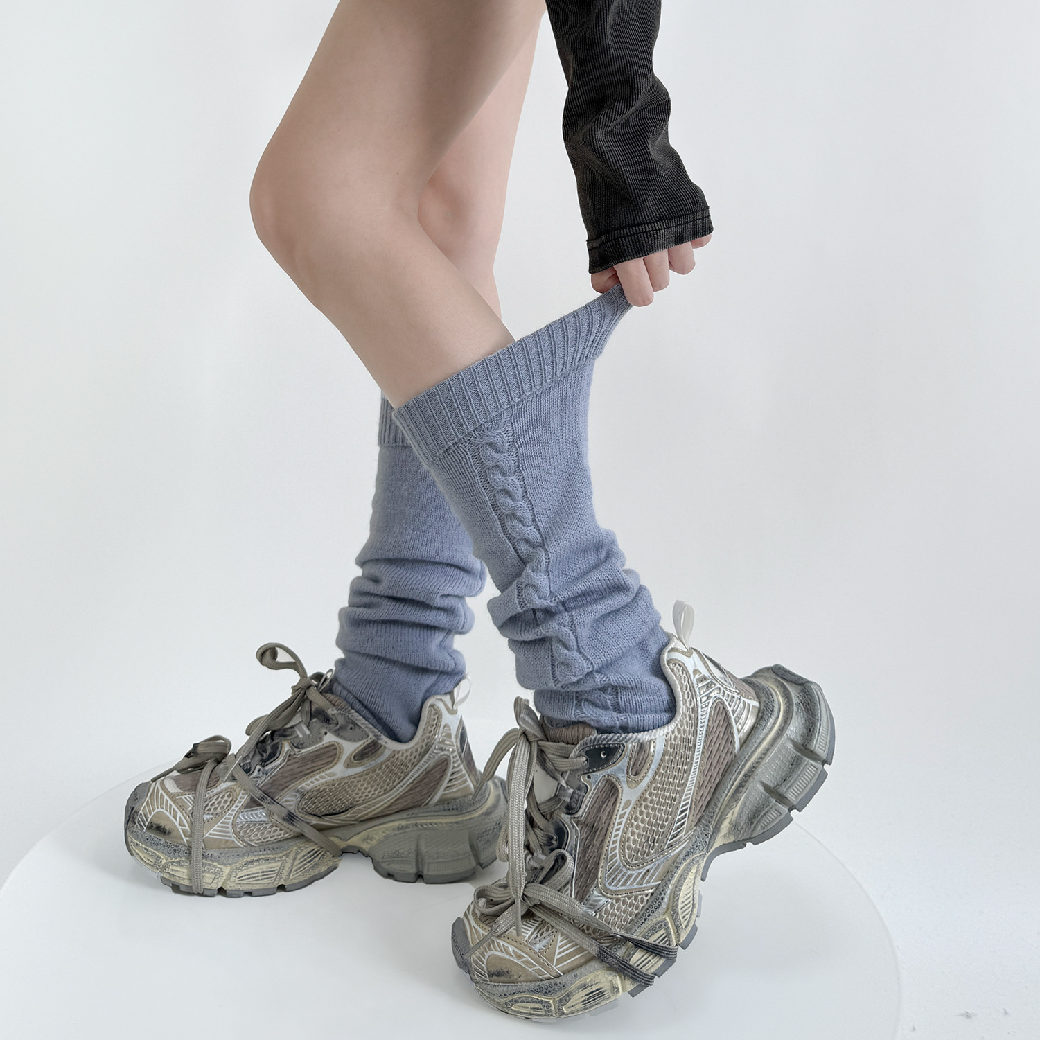 가을과 겨울 트위스트 양말 여성용 플랜지 빈티지 니트 힙 스택 송아지 양말 따뜻한 슬리밍 레그 커버 솔리드 컬러 올 매치 부트 커버