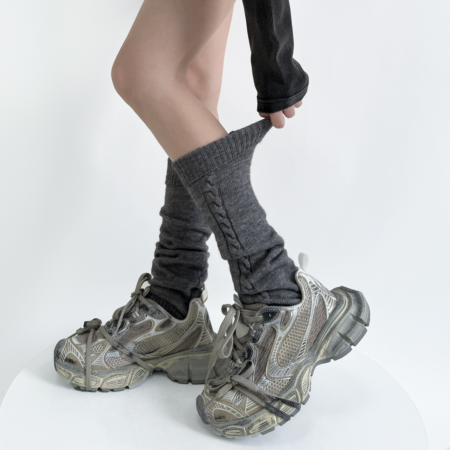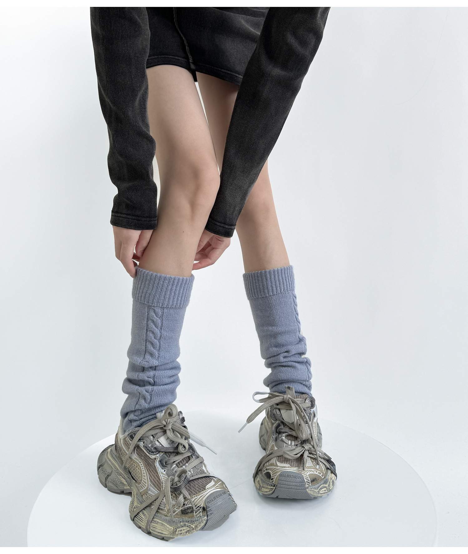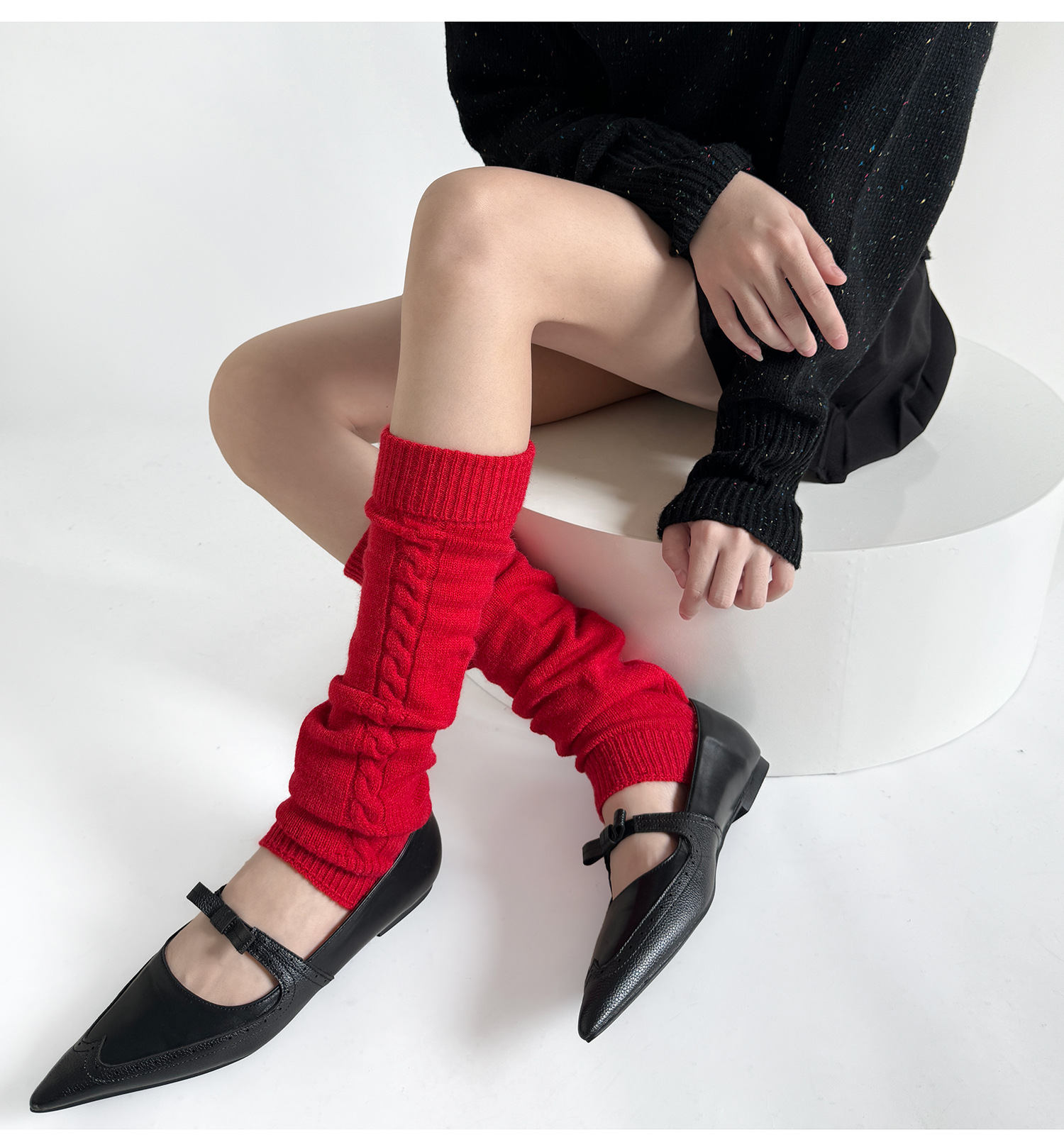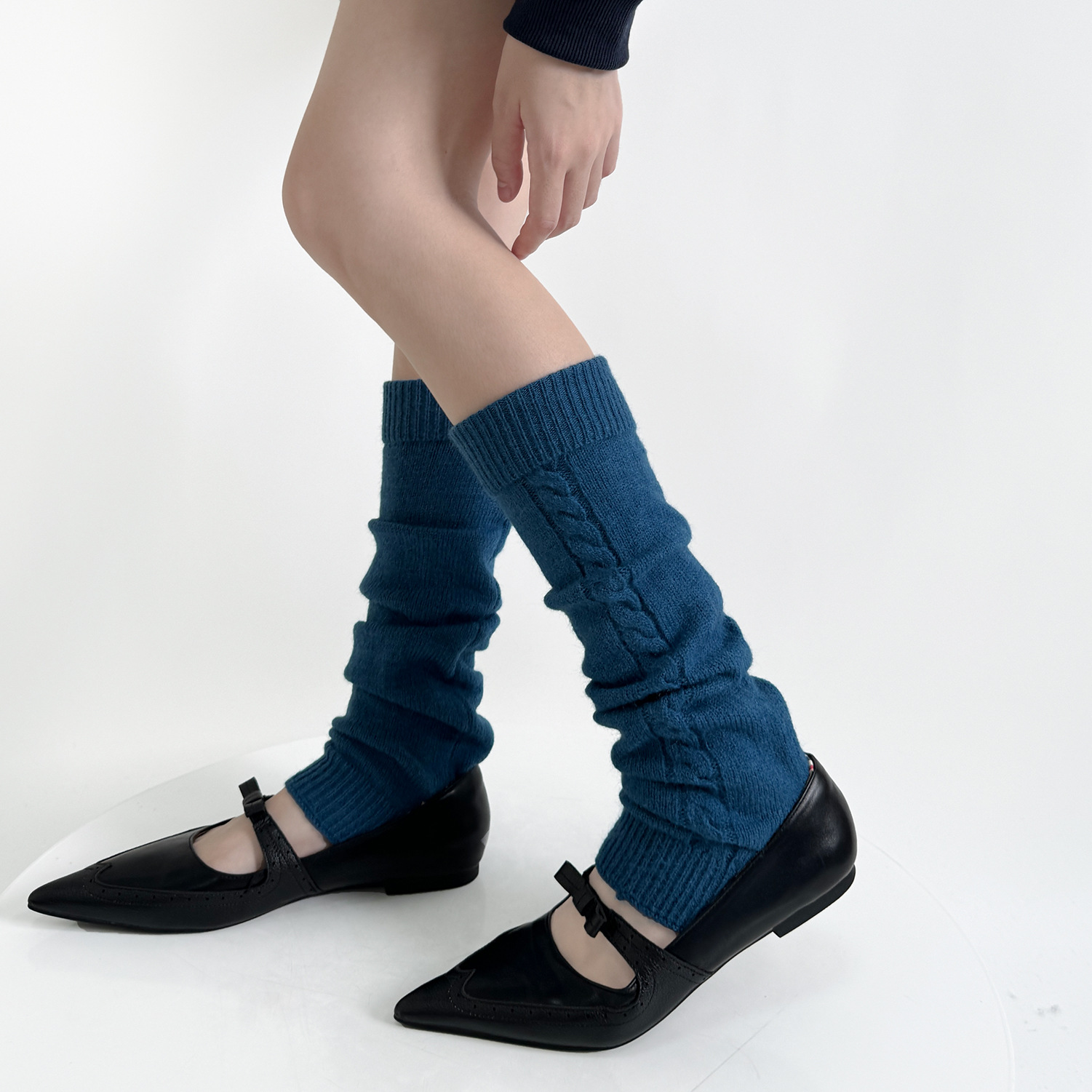 가을과 겨울 트위스트 양말 여성용 플랜지 빈티지 니트 힙 스택 송아지 양말 따뜻한 슬리밍 레그 커버 솔리드 컬러 올 매치 부트 커버