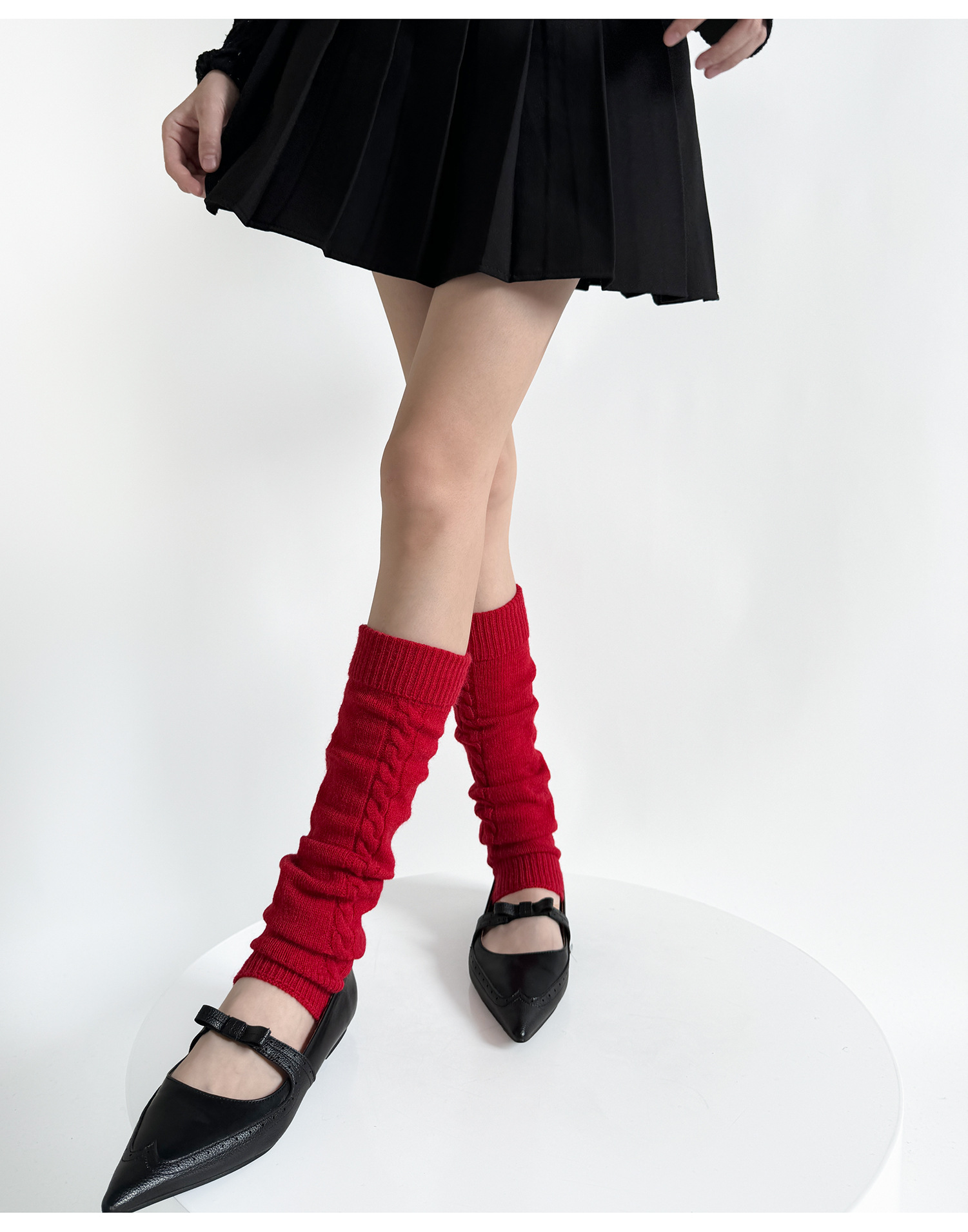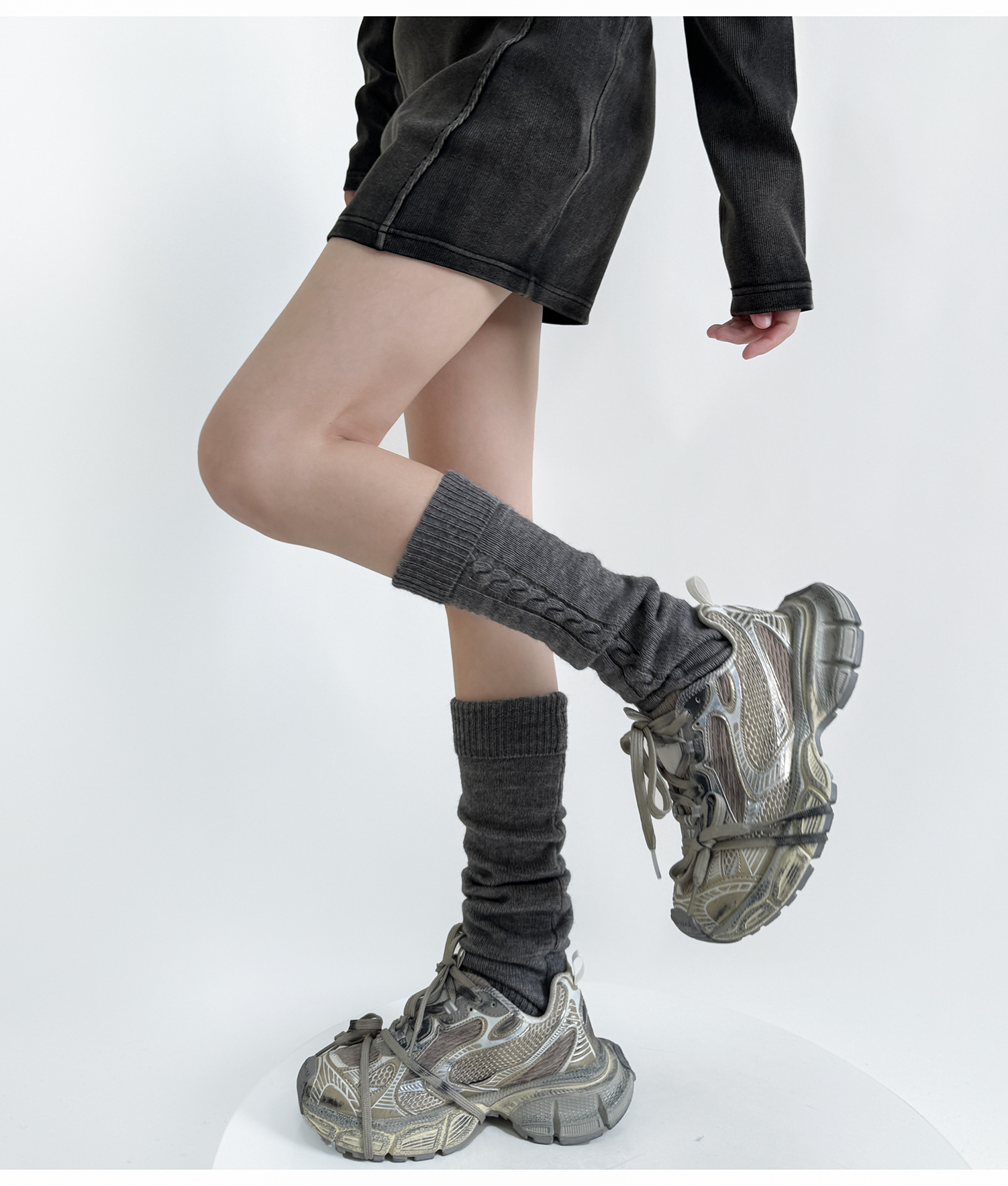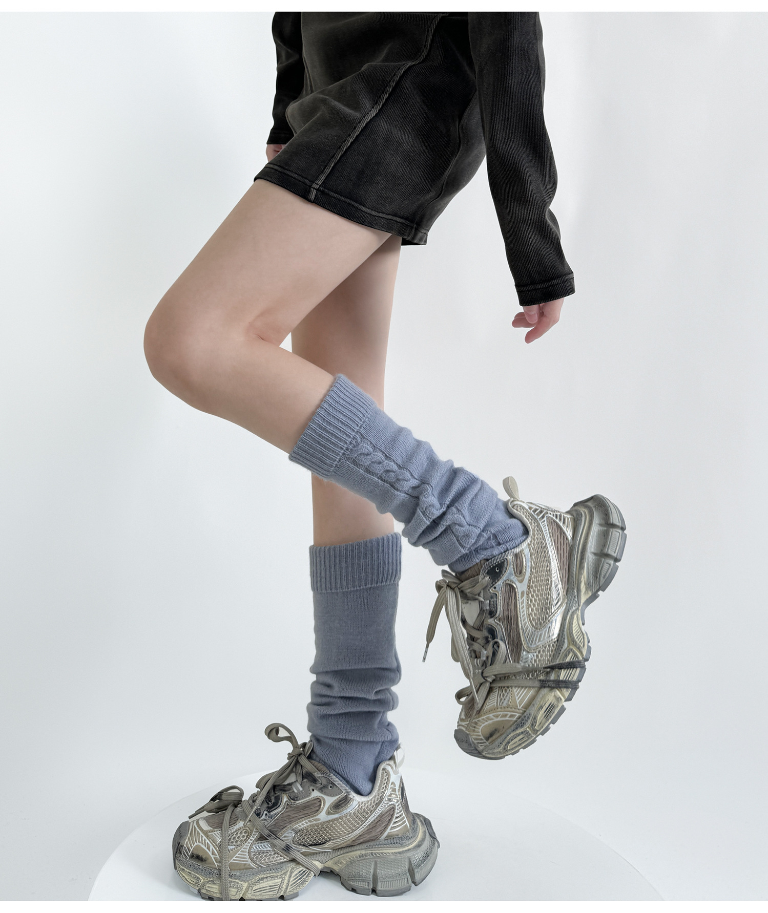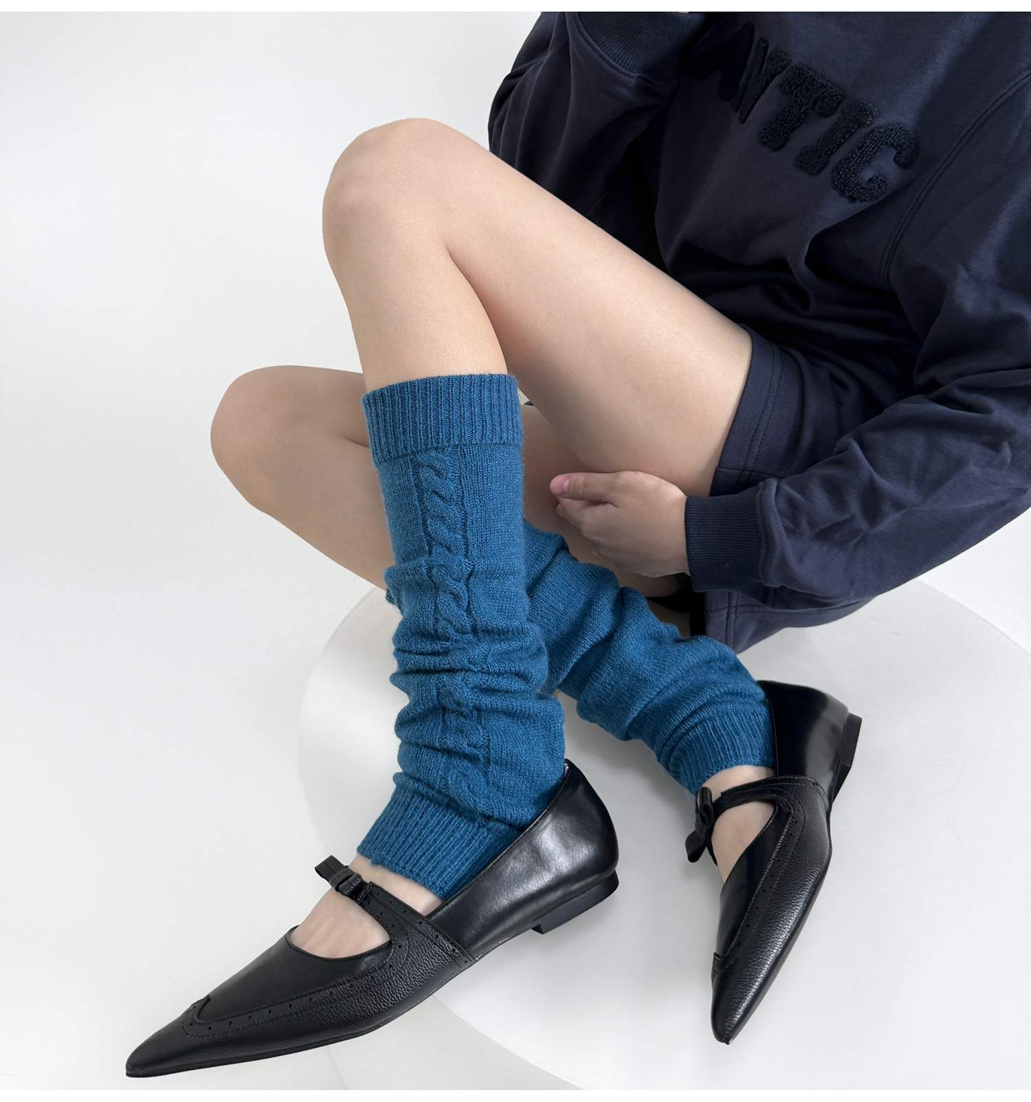 가을과 겨울 트위스트 양말 여성용 플랜지 빈티지 니트 힙 스택 송아지 양말 따뜻한 슬리밍 레그 커버 솔리드 컬러 올 매치 부트 커버