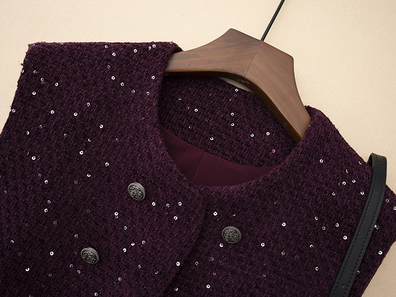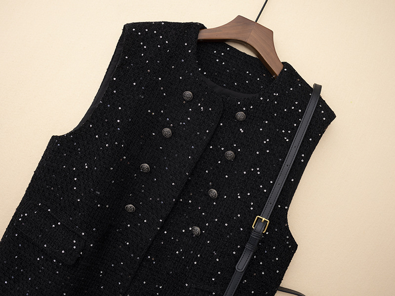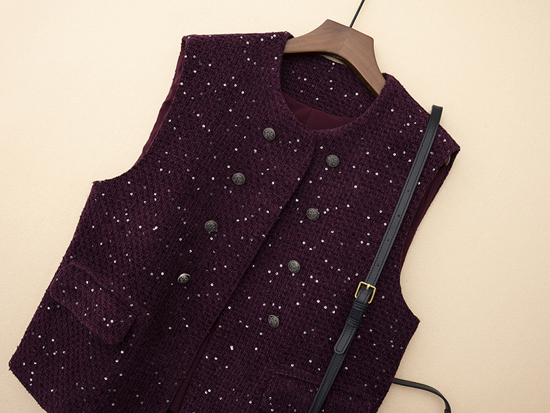 가을과 겨울 새로운 버클 조끼 여성의 우아한 모직 절묘한 밝은 실크 쌓인 패션 샤넬 스타일 연령 감소 조끼 탑스토어 가기