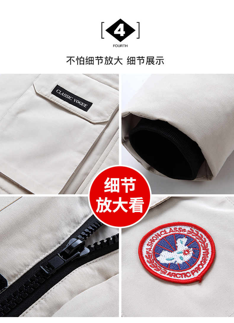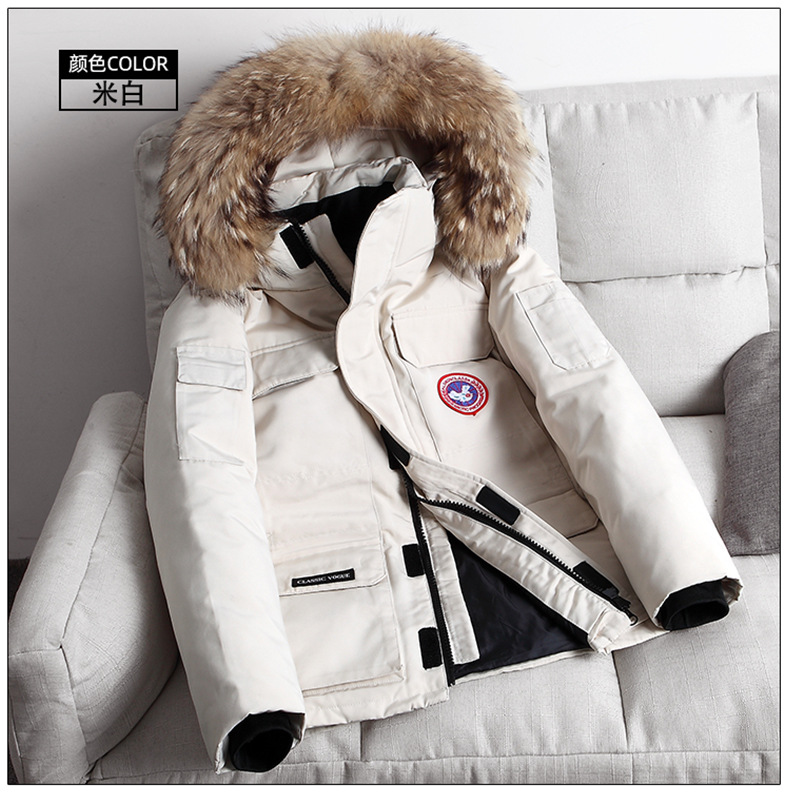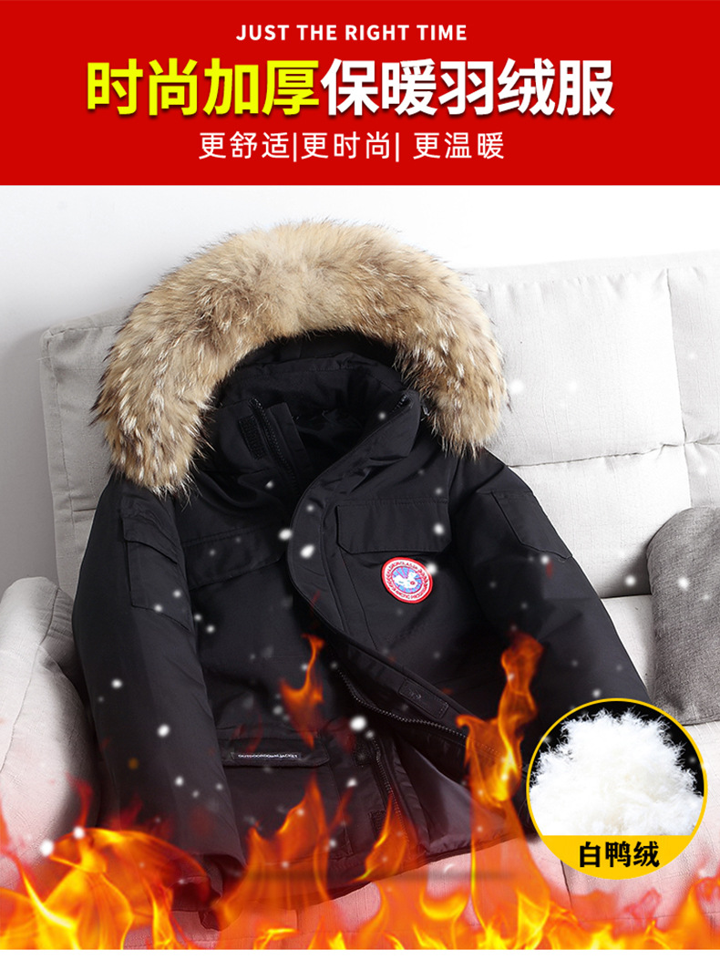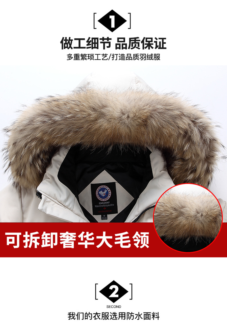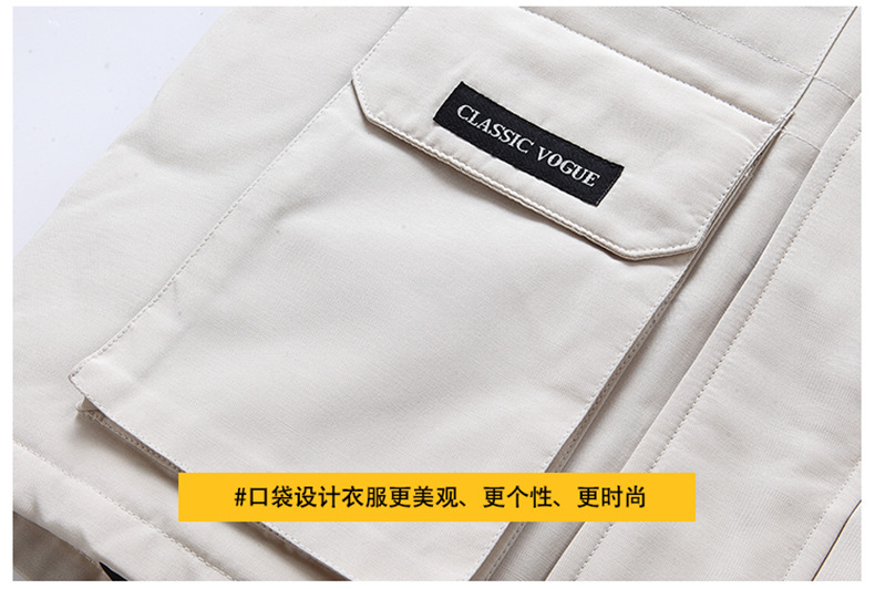 남성과 여성의 가을과 겨울 멀티 포켓 후드 화이트 오리 다운 재킷 한국 캐주얼 대형 모피 칼라 청소년 두꺼운 따뜻한 코트