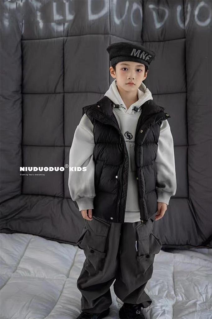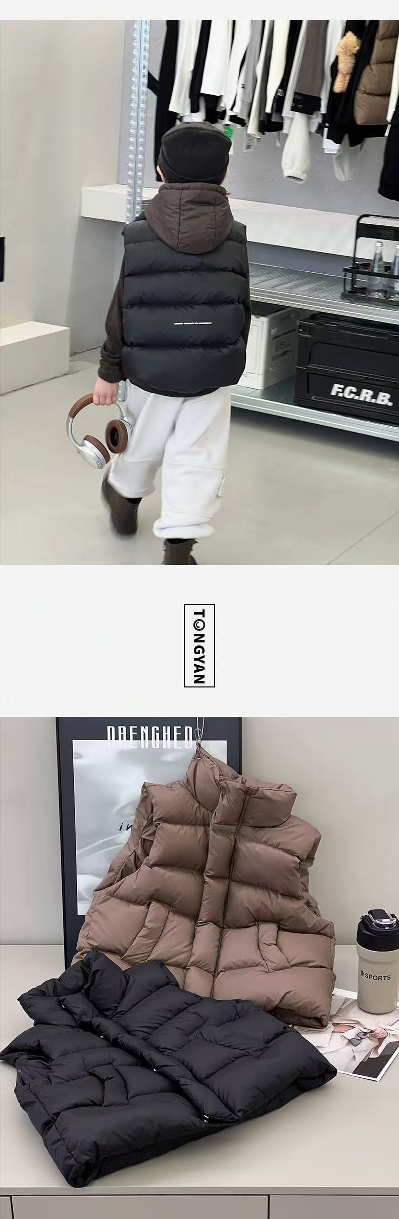 어린이 스탠드 칼라 다운 코튼 패딩 재킷 조끼 소년 및 소녀면 패딩 조끼 중 및 대형 어린이를위한 겨울 두꺼운 따뜻한면 패딩 재킷 조끼스토어 가기
