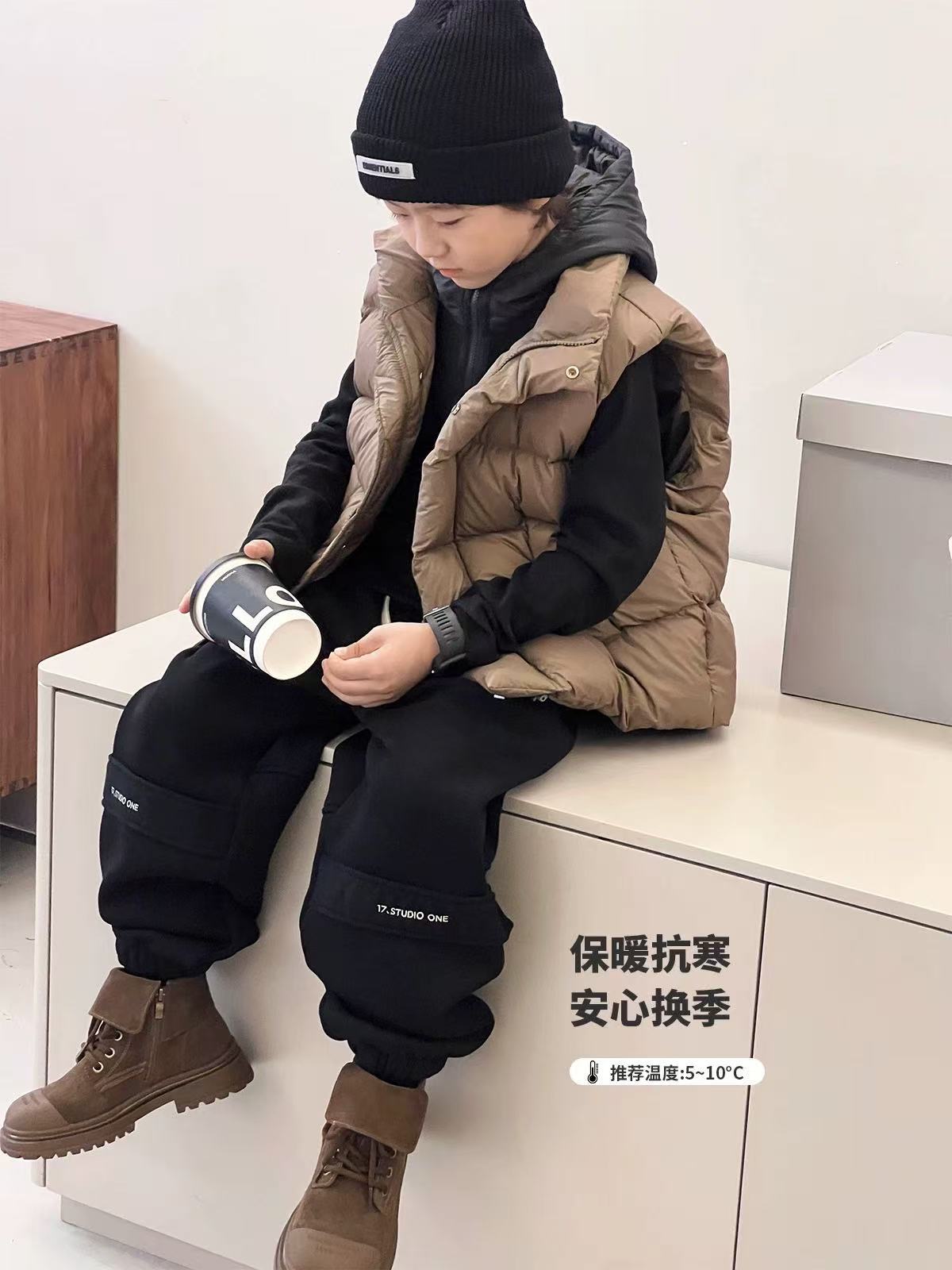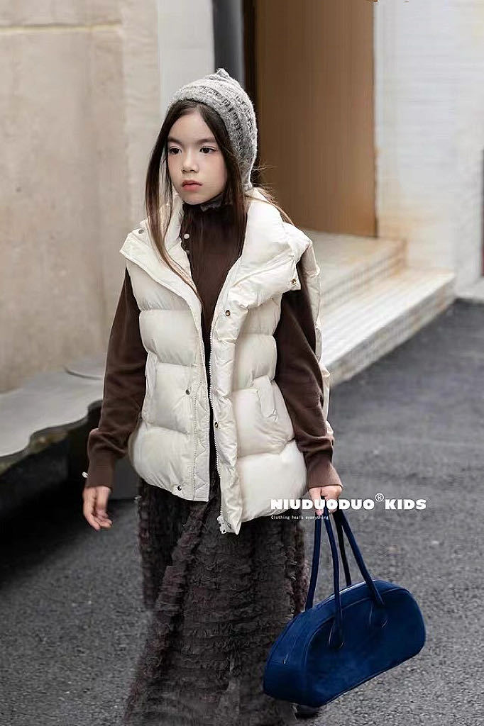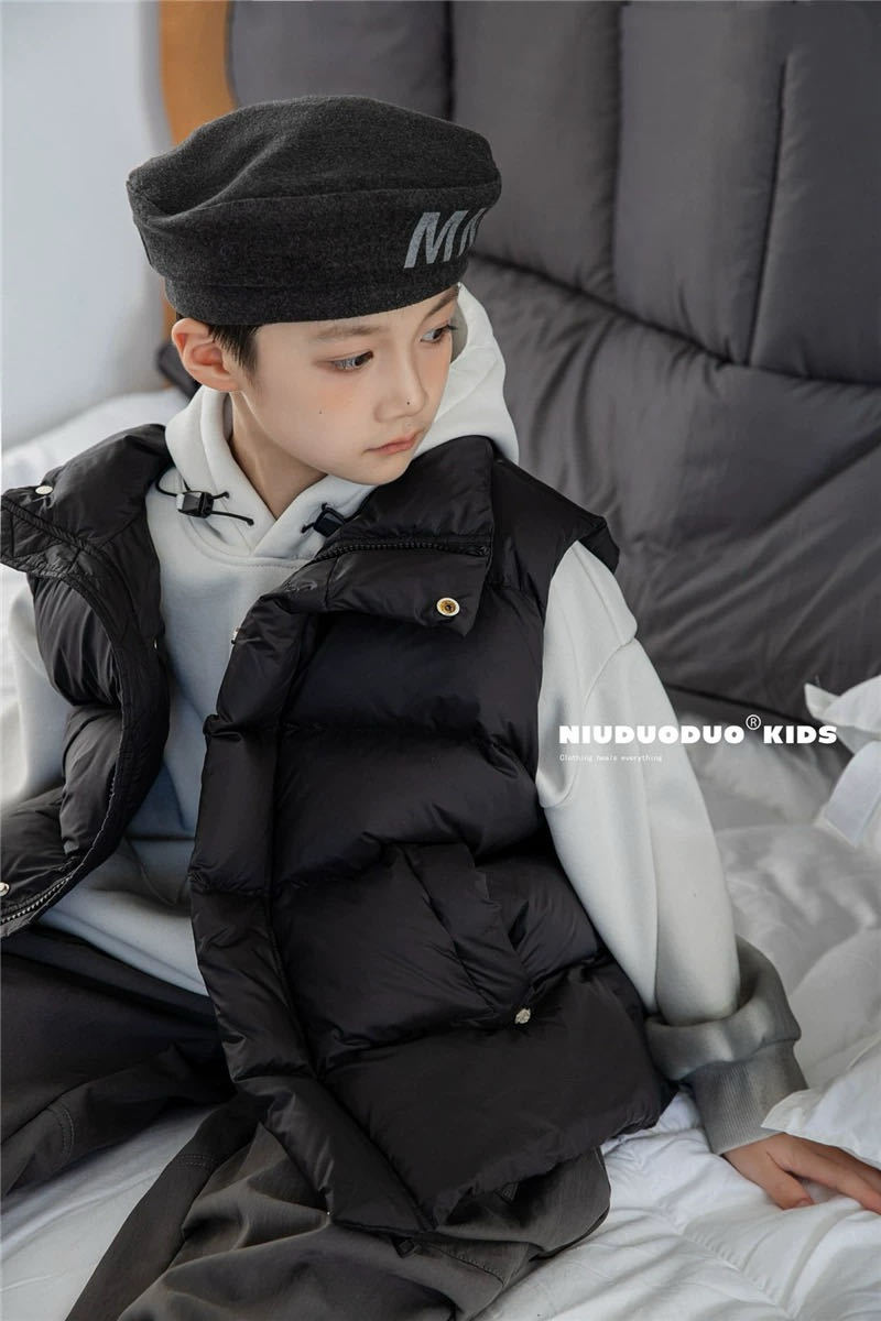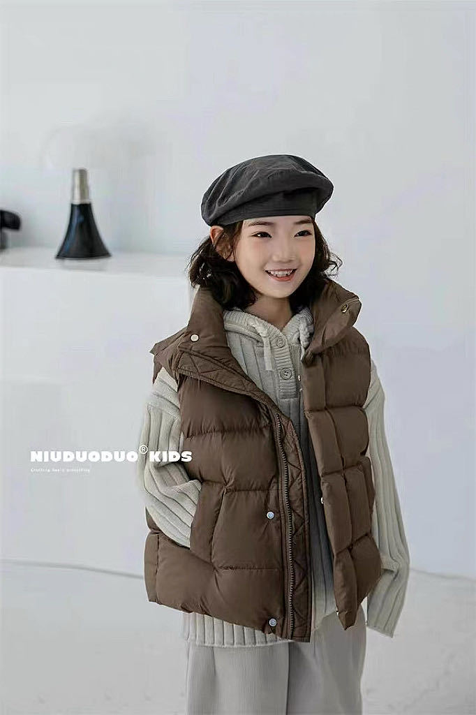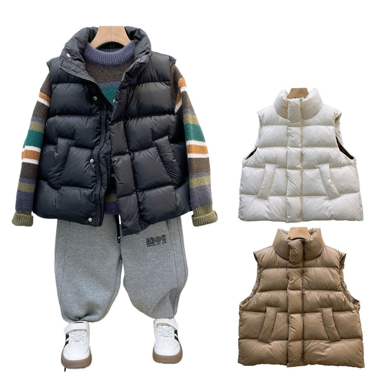 어린이 스탠드 칼라 다운 코튼 패딩 재킷 조끼 소년 및 소녀면 패딩 조끼 중 및 대형 어린이를위한 겨울 두꺼운 따뜻한면 패딩 재킷 조끼