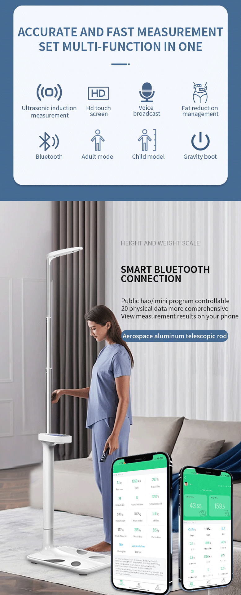 블루투스 높이 스케일 초음파 신체 검사 스케일 높이 및 체중 측정 기기 체중 감량 스케일 지능형 학생 높이 무게 스케일