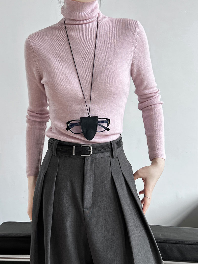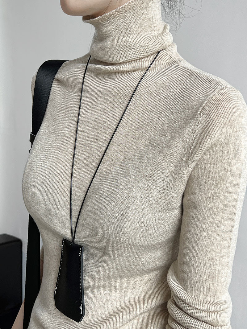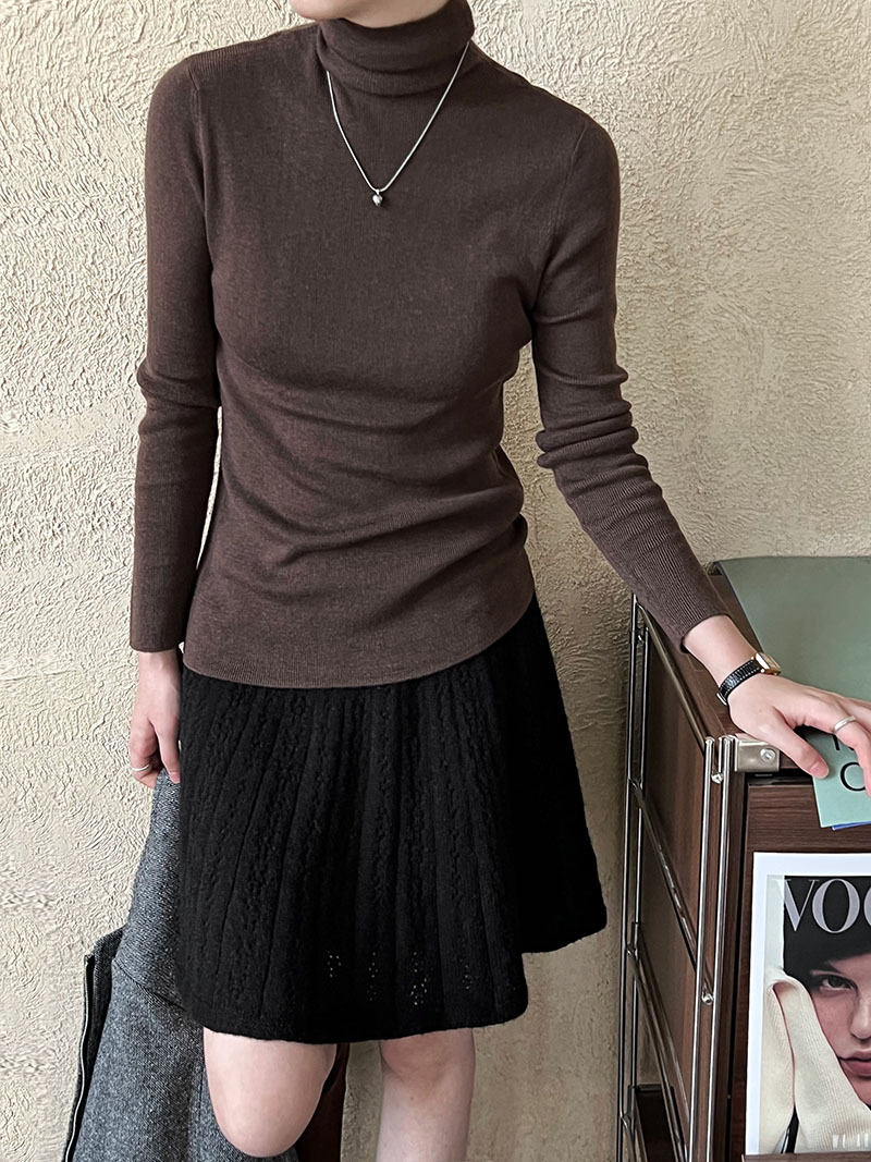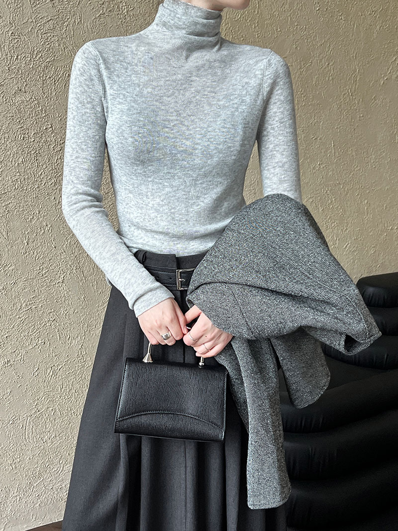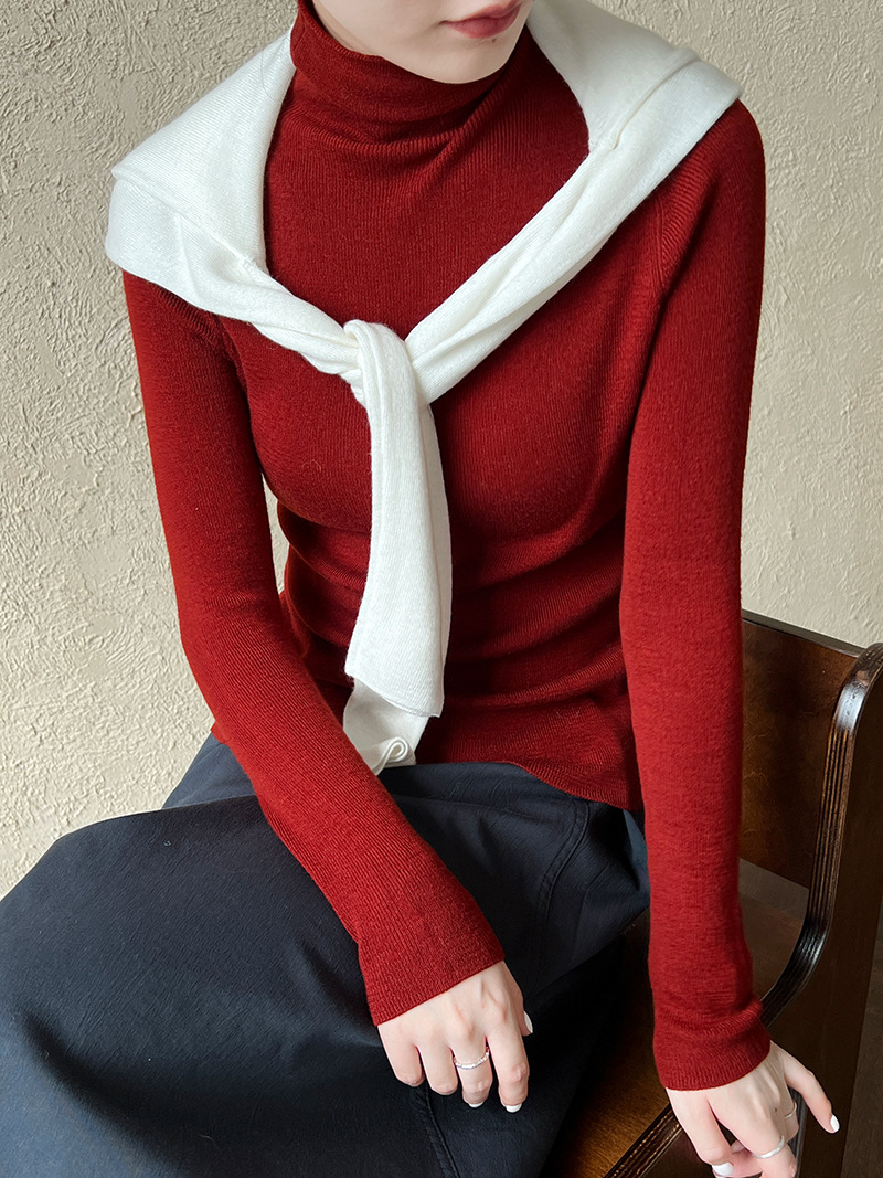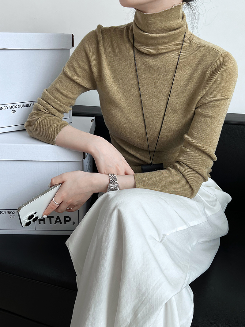 루시 심플 니트 여성용 2025 가을 겨울 신상 하이넥 울 베이스 셔츠 스택 칼라 탑 ss592