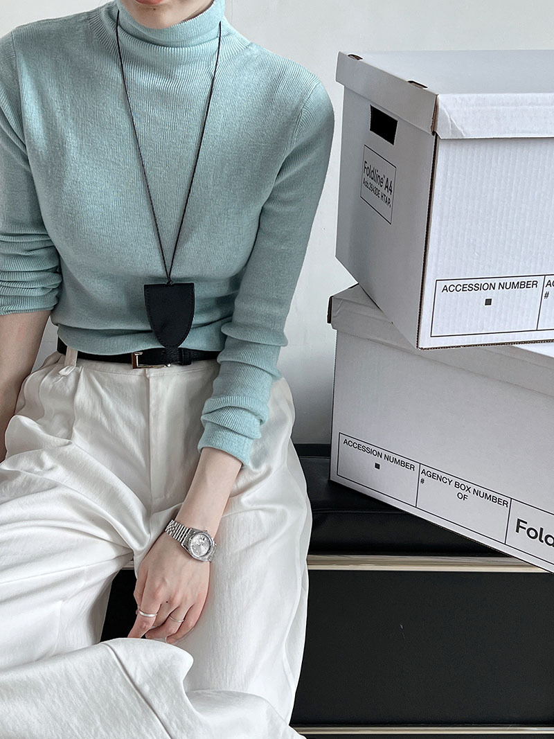 루시 심플 니트 여성용 2025 가을 겨울 신상 하이넥 울 베이스 셔츠 스택 칼라 탑 ss592스토어 가기
