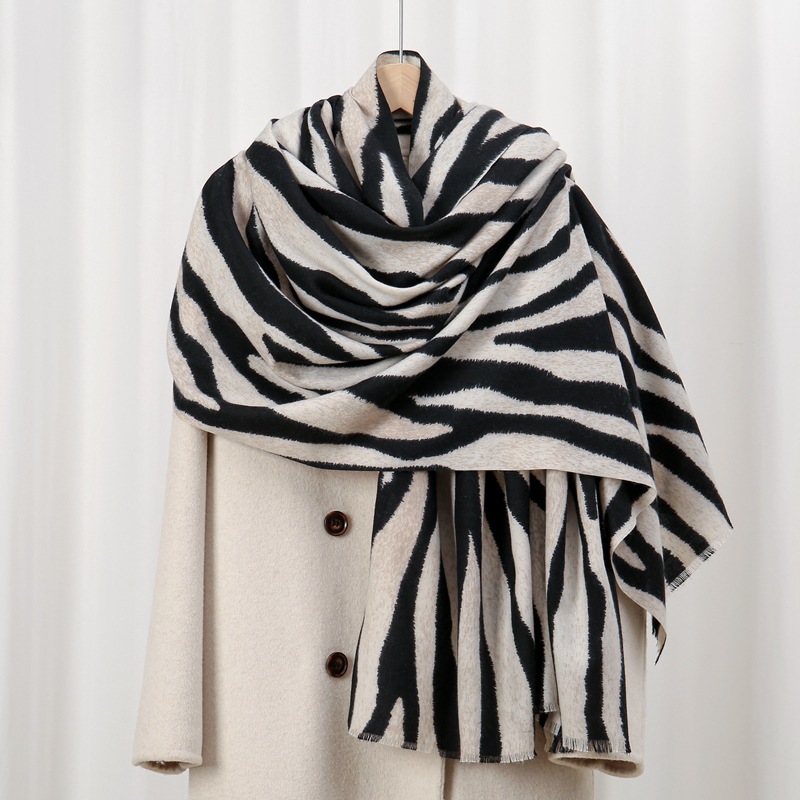 야생 얼룩말 무늬 피부 친화적인 벨벳 수출용 크로스보더 라이브 방송 신상 가을 겨울 피부 친화적인 보온성 인조 캐시미어 프린트 스카프 다용도 숄