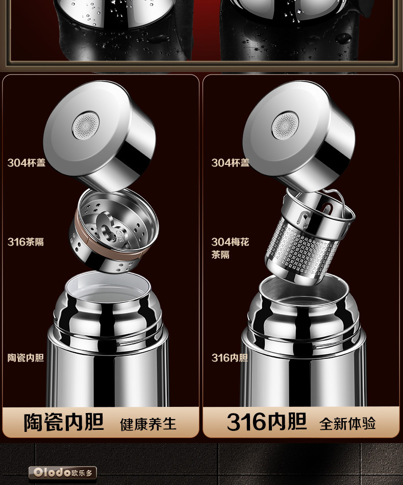 세라믹 라이너 보온병 컵 남성과 여성의 2024 새로운 차 316 스테인레스 스틸 여행 컵 높은 색상 가치 대용량스토어 가기
