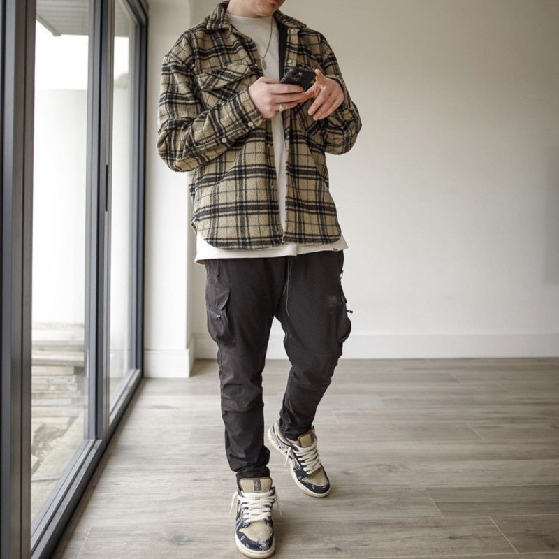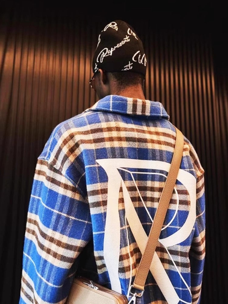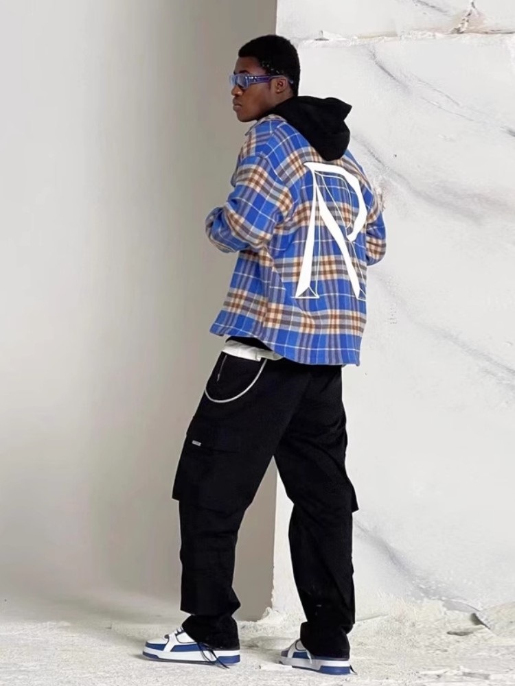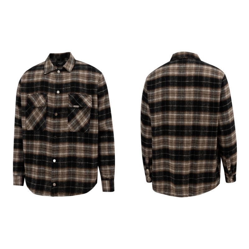 아메리칸 스타일 트렌디 브랜드는 줄무늬 격자 무늬 하이 엔드 셔츠 남성 옷깃 자켓 인스 타 그램 스타일 가을과 겨울 자켓 여성을 대표합니다.스토어 가기