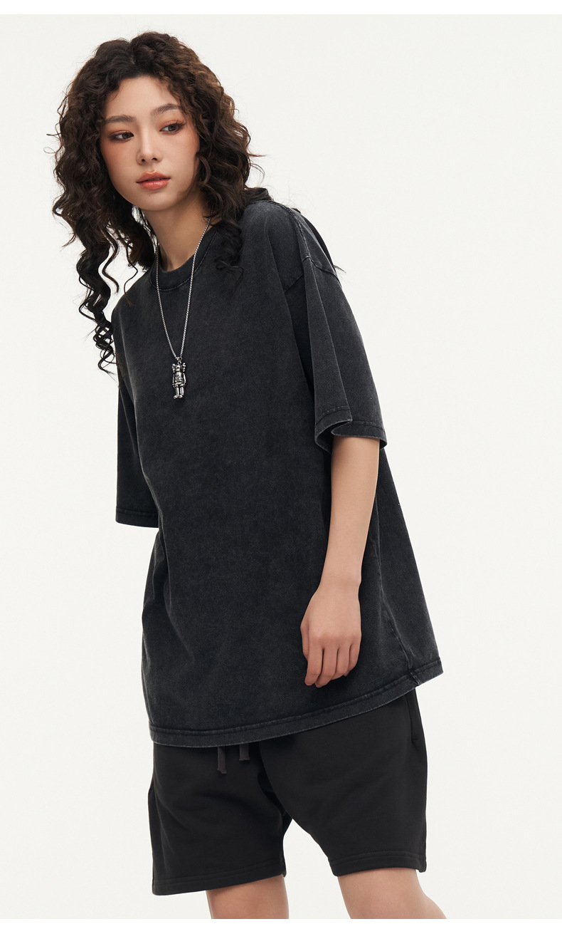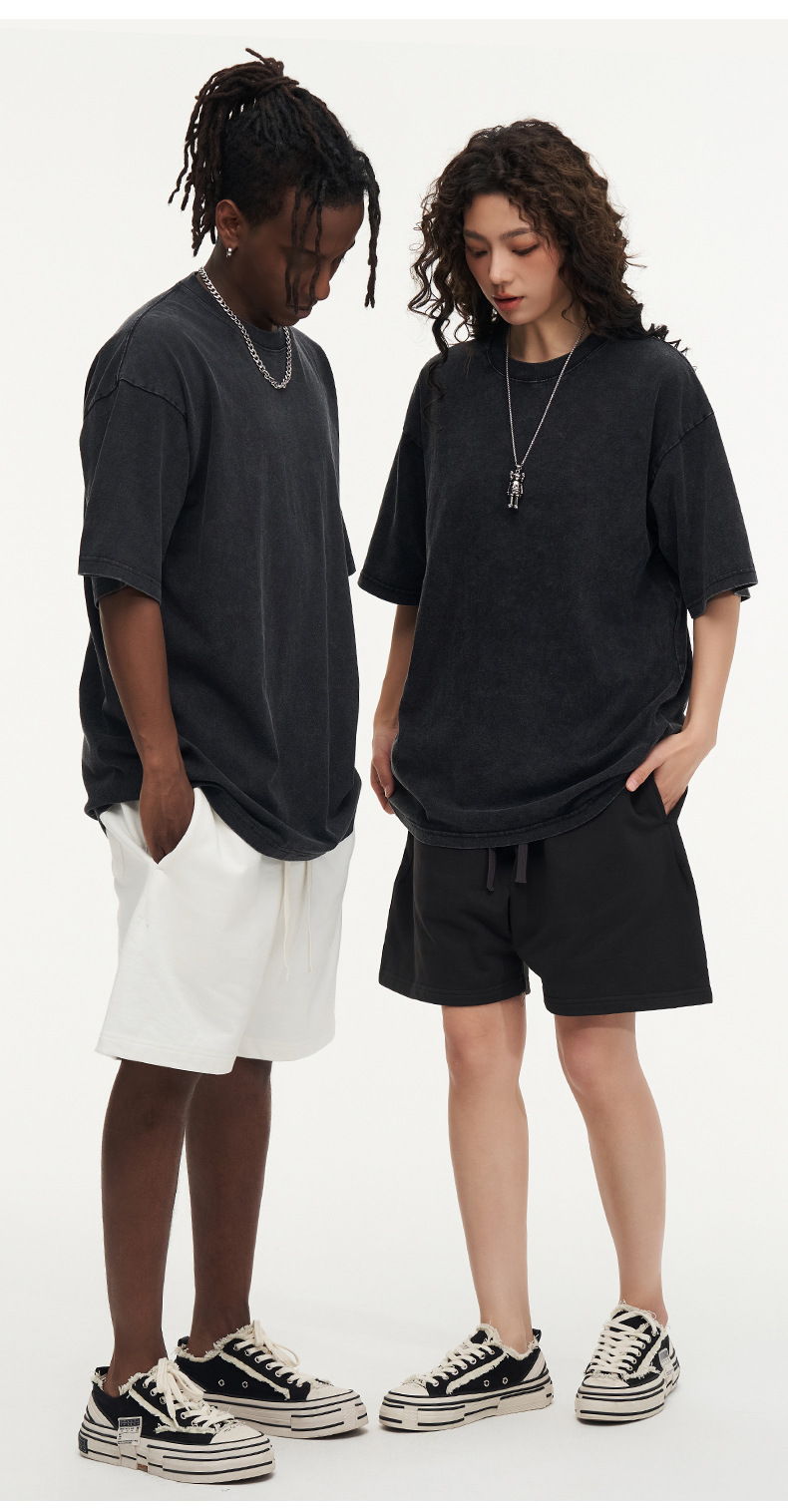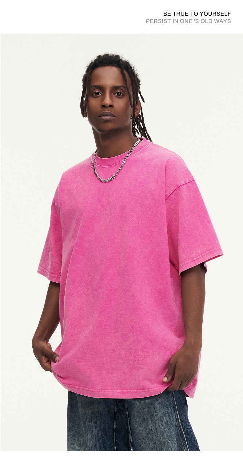 유럽 사이즈 씻은 바틱 올드 헤비 코튼 티셔츠 Oversize230g 남성용 느슨한 눈송이 짧은 소매스토어 가기
