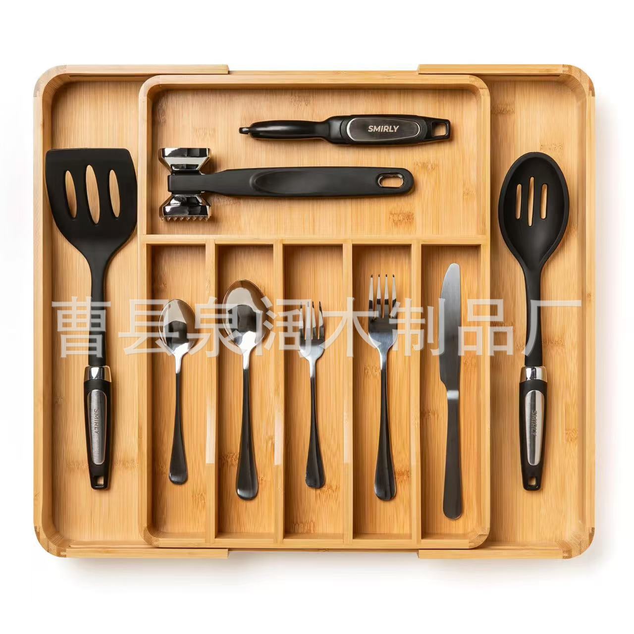 대나무 나무 부엌 칼 저장 상자 개폐식 칼 및 포크 분할 주최자 나무 서랍 식기 보관 상자스토어 가기