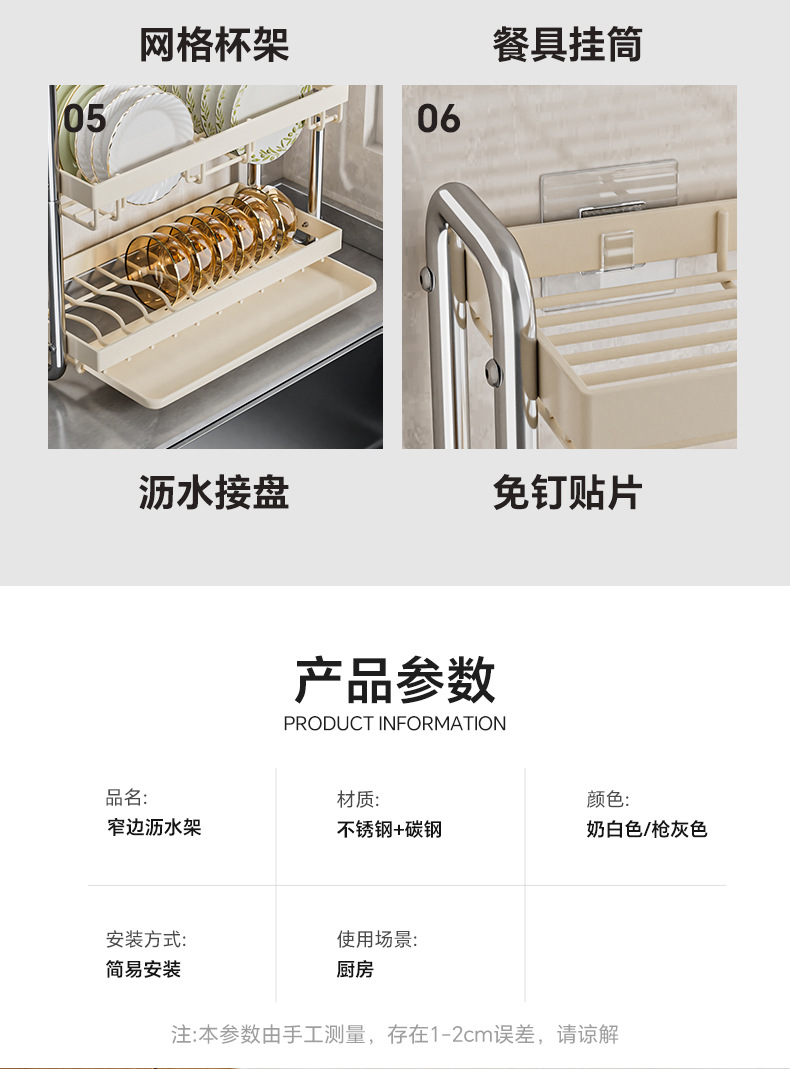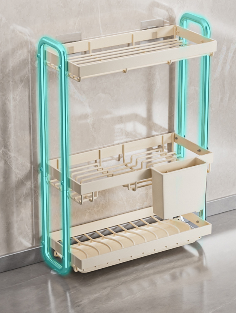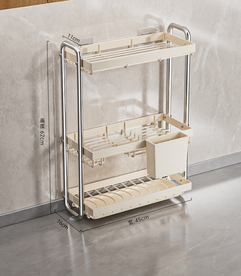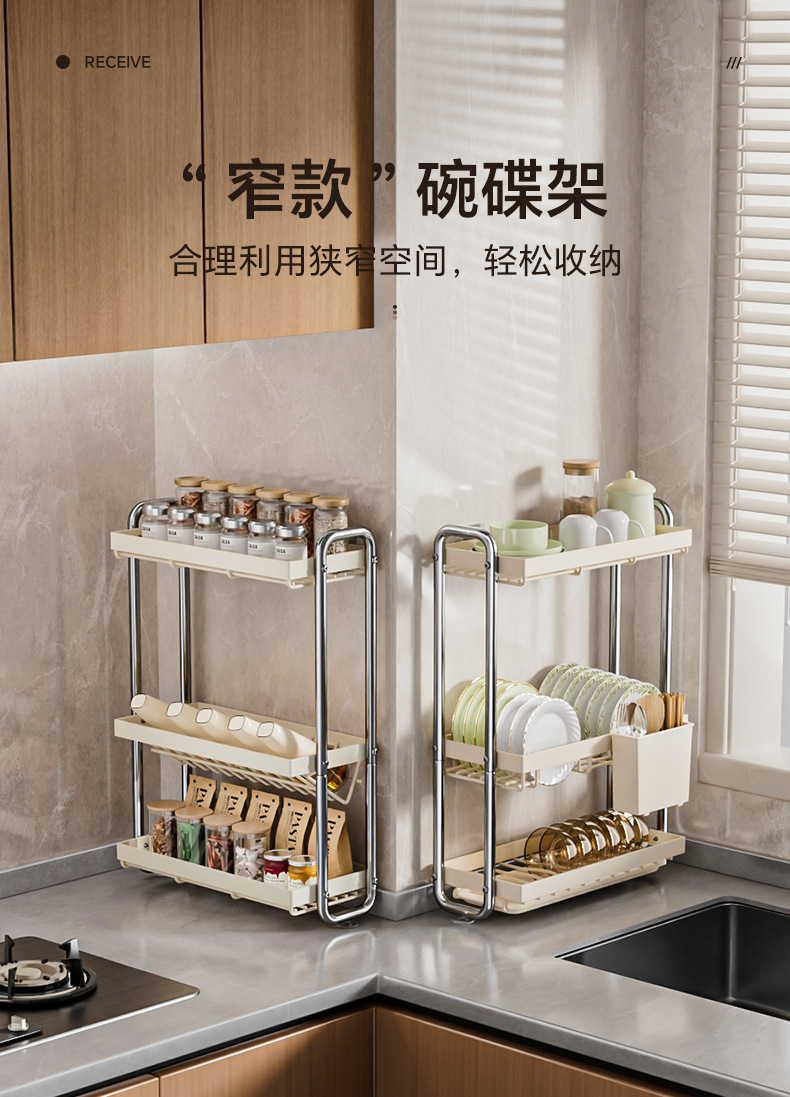 스테인레스 스틸 접시 보관 랙 주방 보관 랙 좁은 테이블 접시 배수 랙 다기능 그릇 및 젓가락 저장 상자 찬장