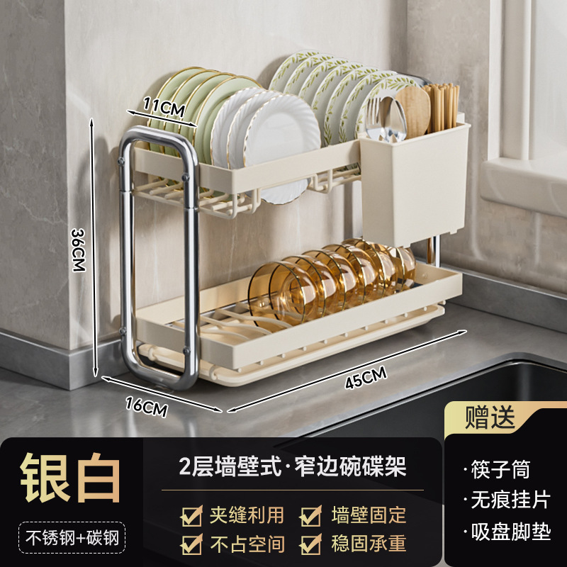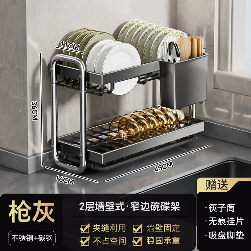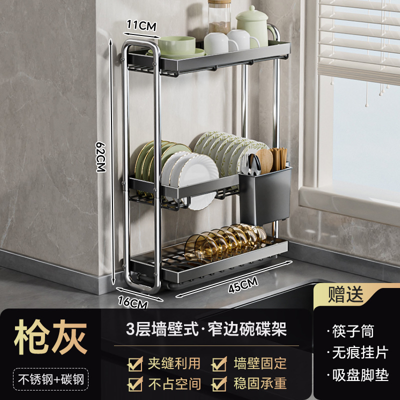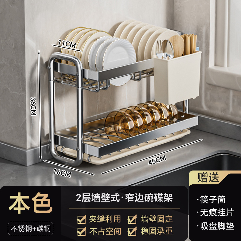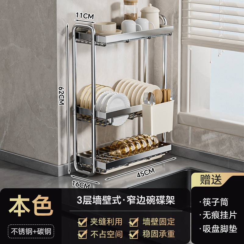 스테인레스 스틸 접시 보관 랙 주방 보관 랙 좁은 테이블 접시 배수 랙 다기능 그릇 및 젓가락 저장 상자 찬장스토어 가기