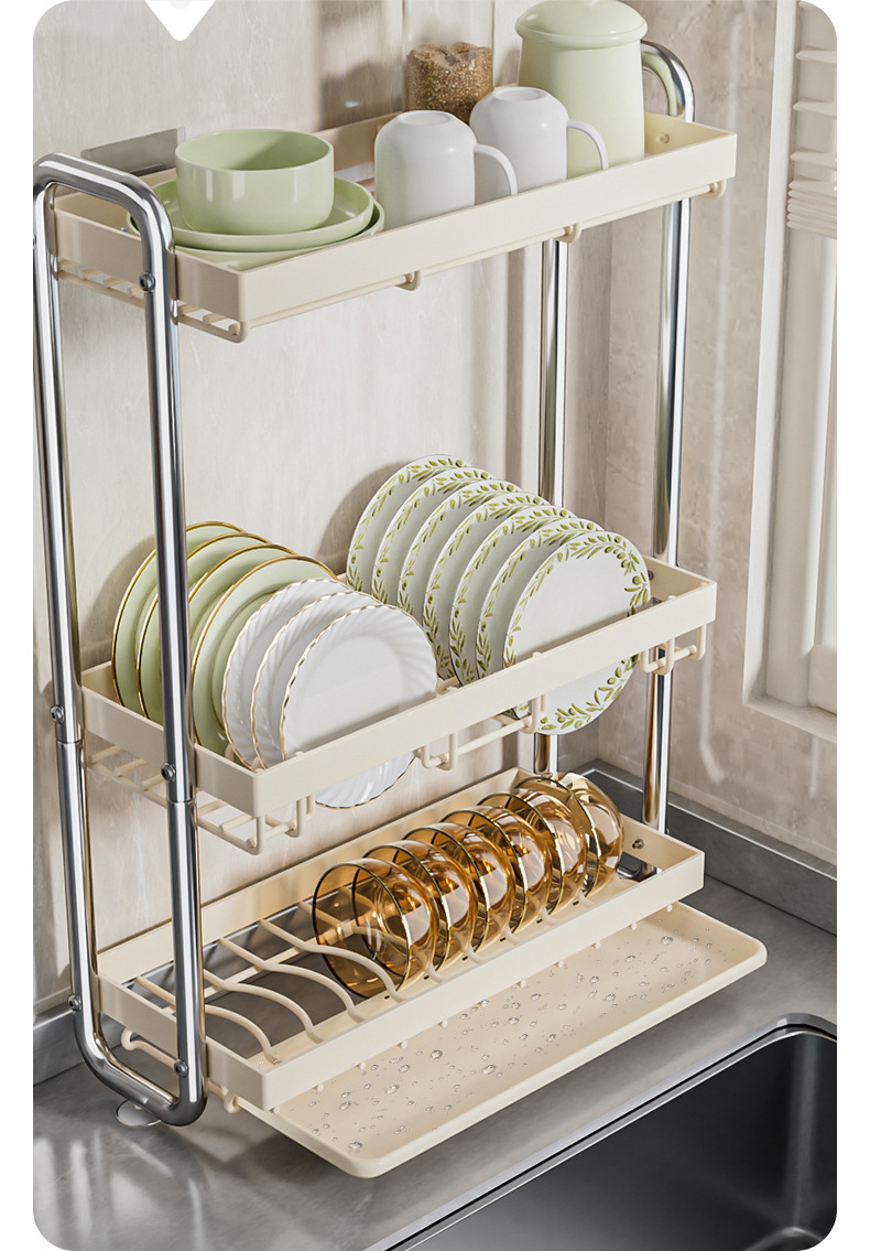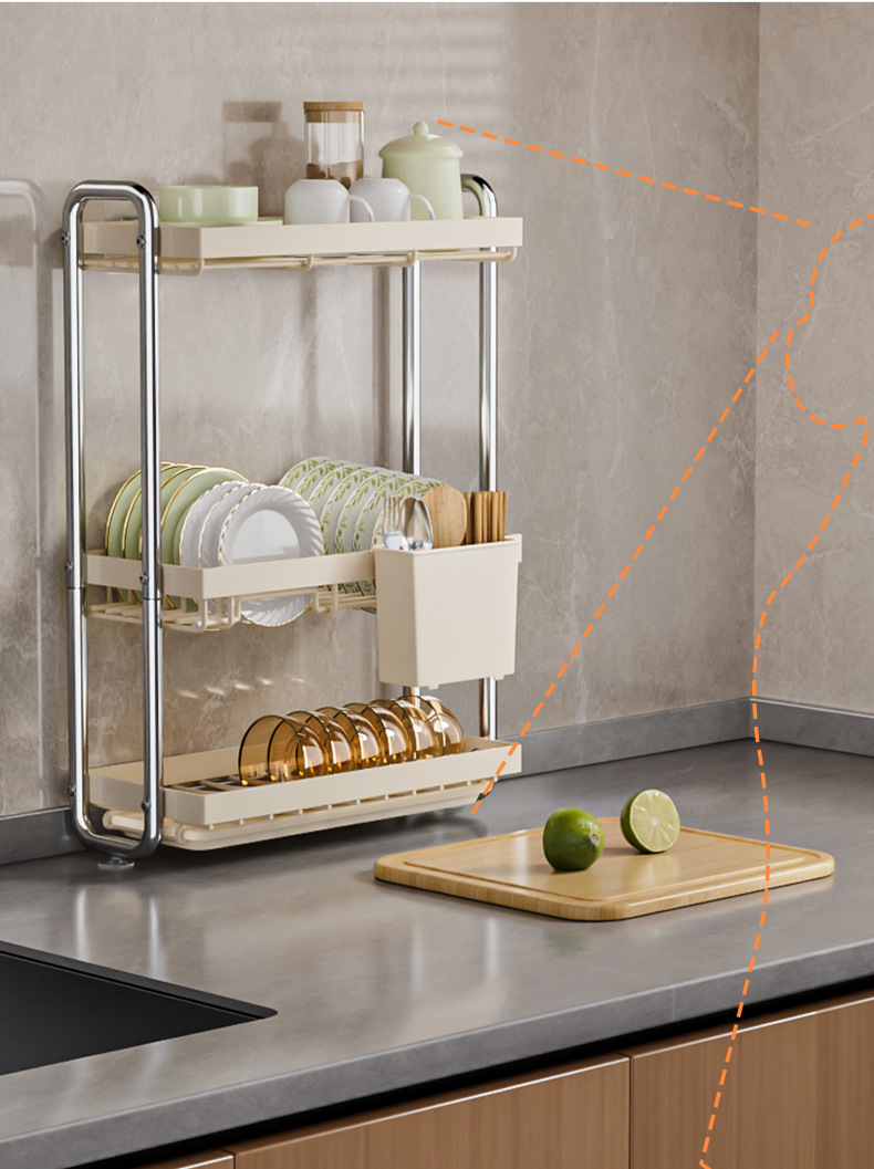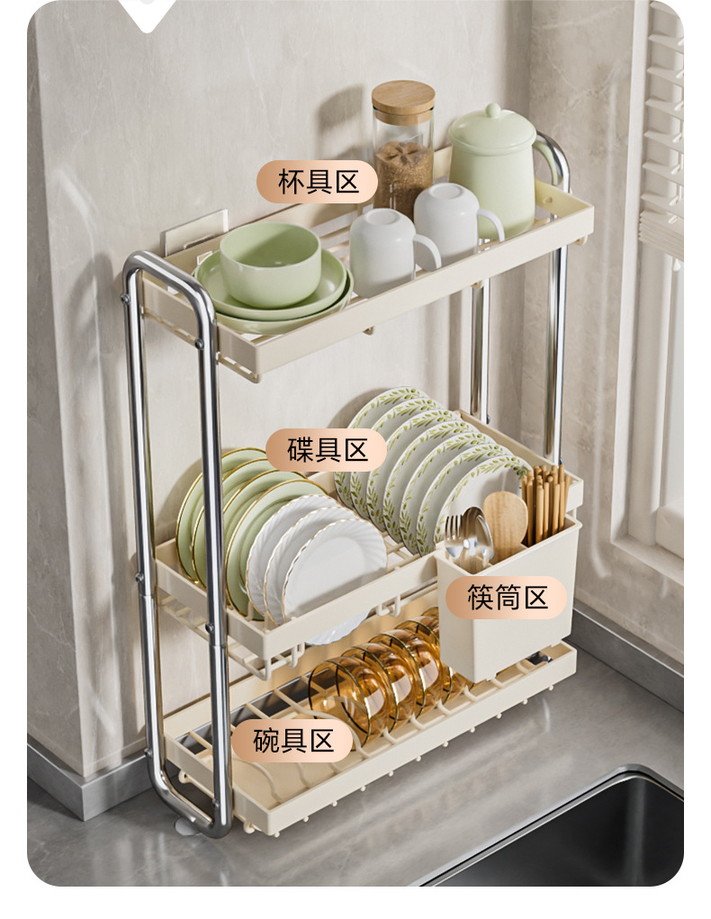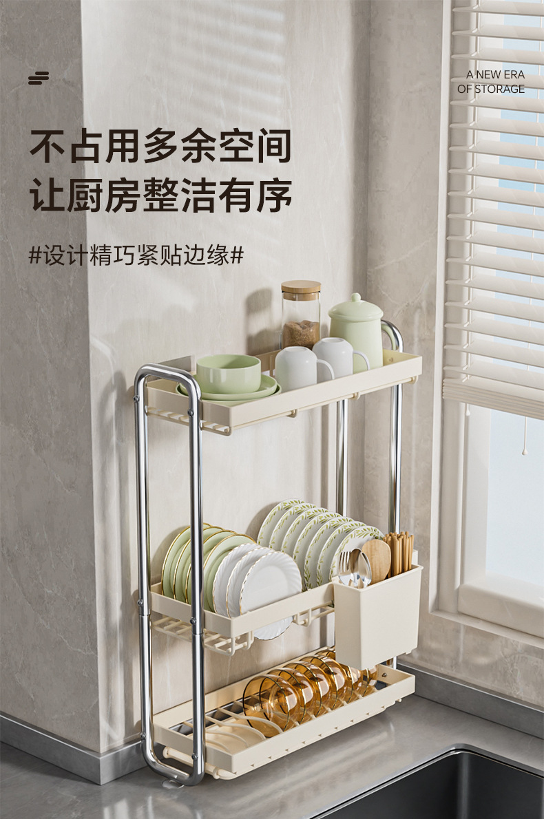 스테인레스 스틸 접시 보관 랙 주방 보관 랙 좁은 테이블 접시 배수 랙 다기능 그릇 및 젓가락 저장 상자 찬장스토어 가기