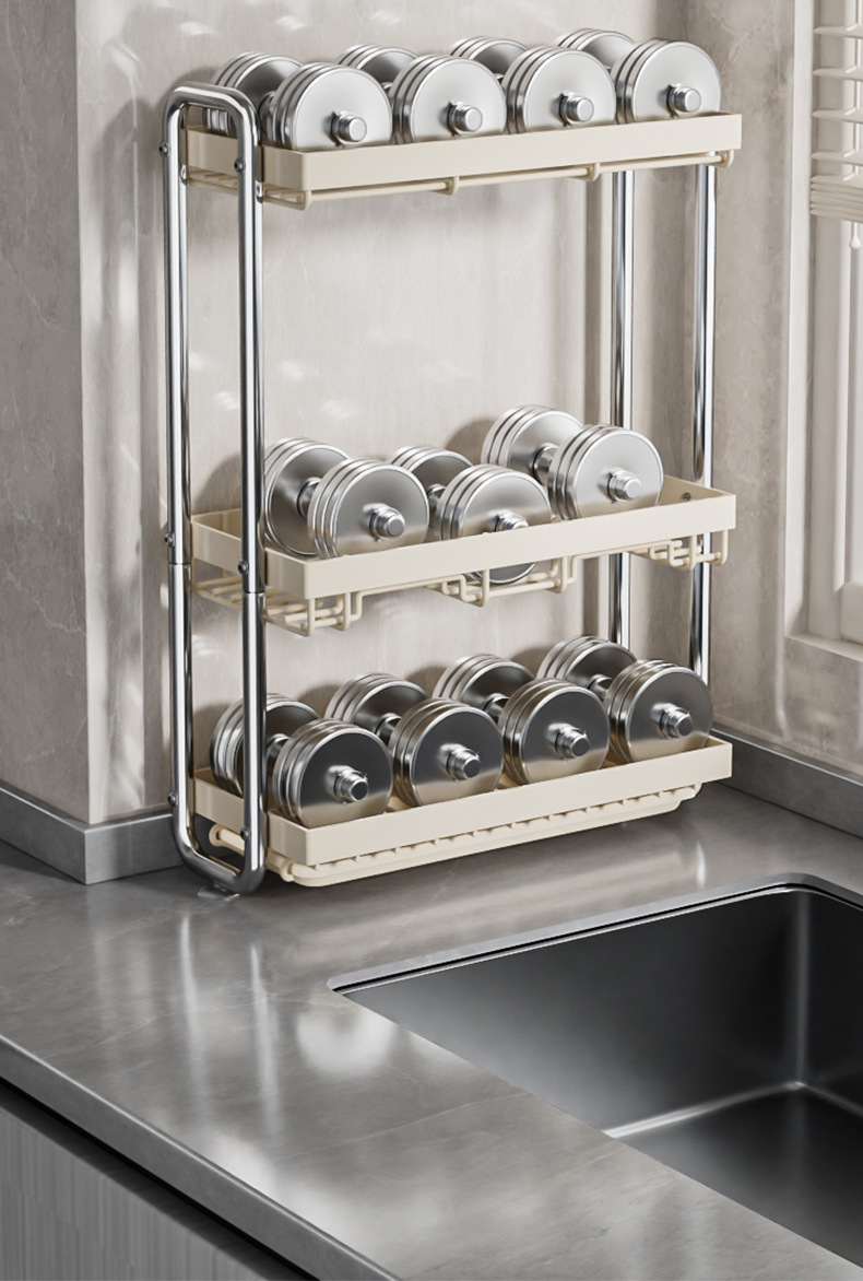 • 3단 벽걸이형*좁은 가장자리 스파이스 랙*밀크 화이트