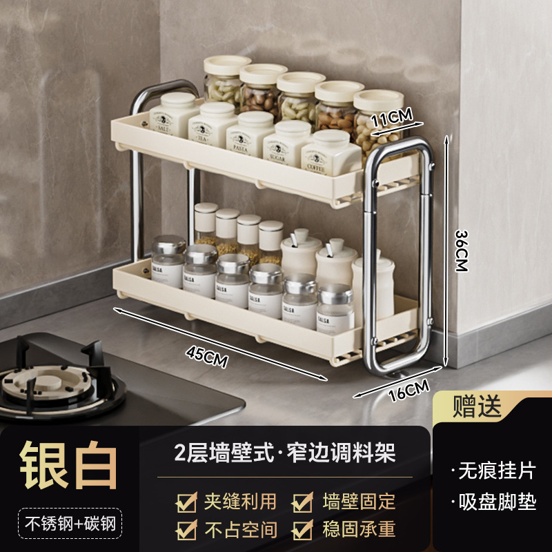 • 2단 벽걸이형*좁은 가장자리 스파이스 랙*밀크 화이트
