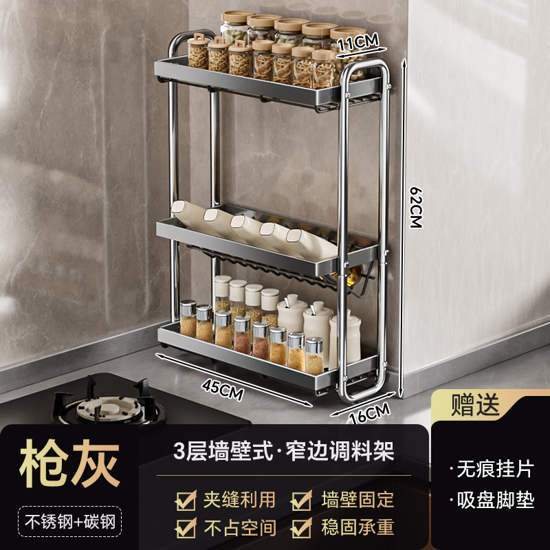 • 3단 벽형*좁은 가장자리 스파이스 랙*건 그레이