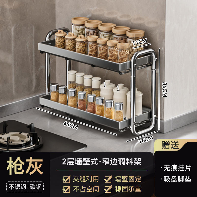 • 2단 벽걸이형*좁은 가장자리 스파이스 랙*건그레이