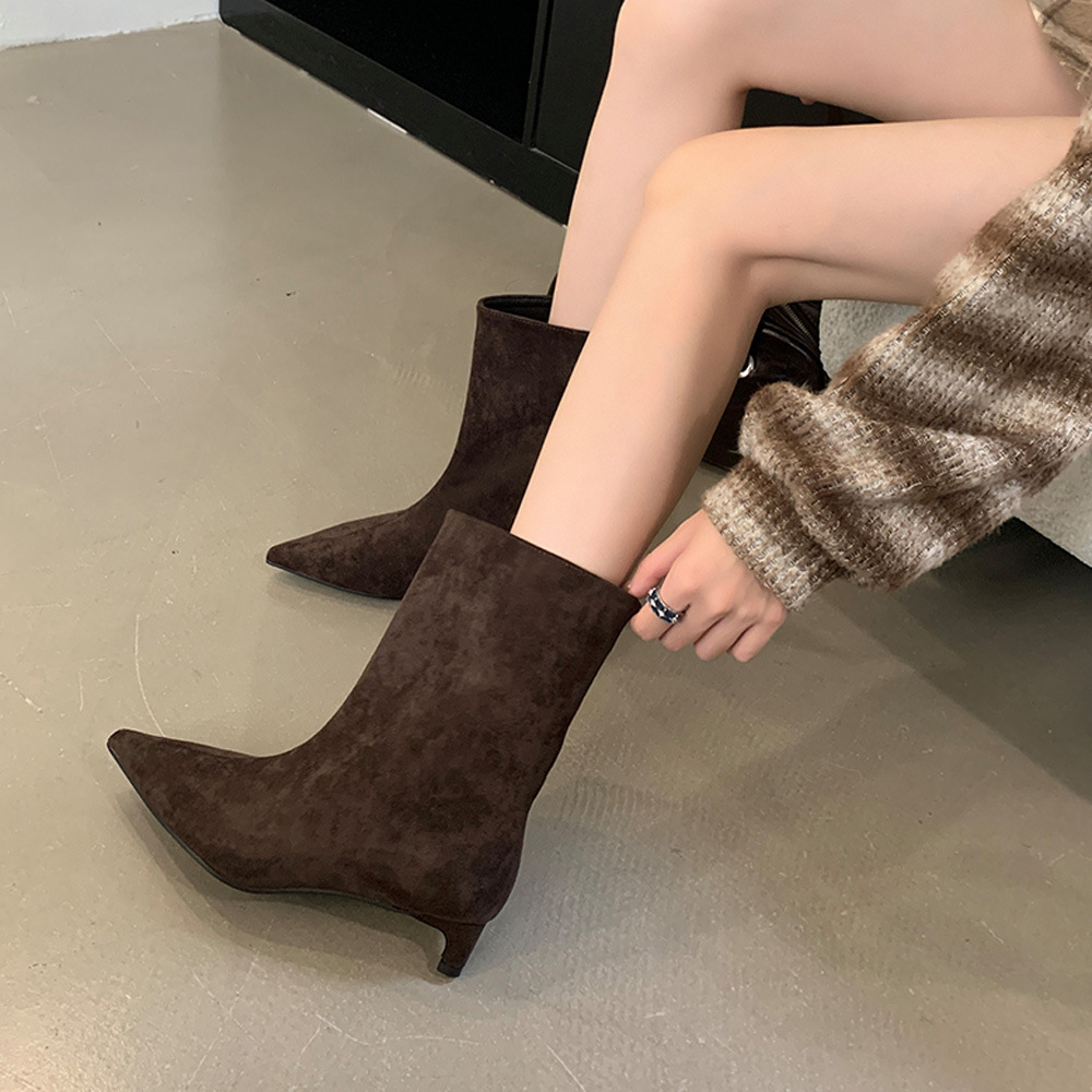여성용 부츠 2025 가을 겨울 신상품 도매 유럽 및 미국 스타일 여성용 부츠 슬리밍 스틸 힐 뾰족한 패션 부츠 하이힐 숏부츠스토어 가기