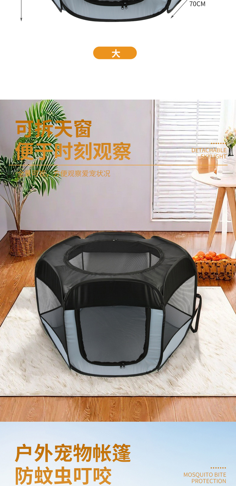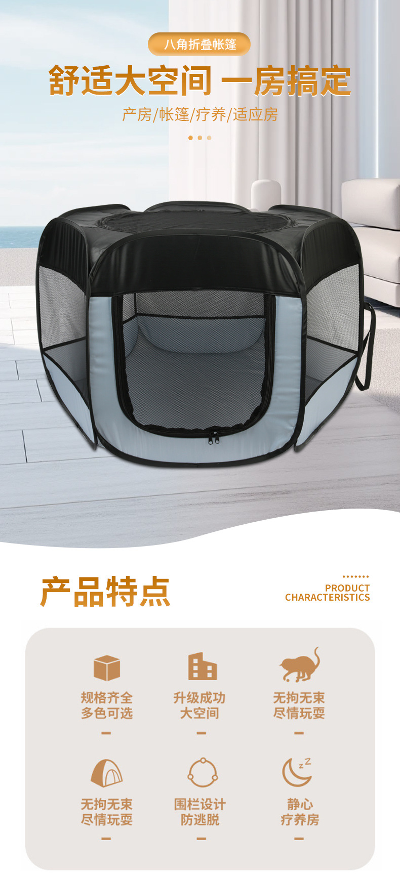 실내 및 실외 애완 동물 텐트 옥스포드 천 긁힘 방지 접이식 개 케이지 개 고양이 배달실 육각형 애완 동물 울타리