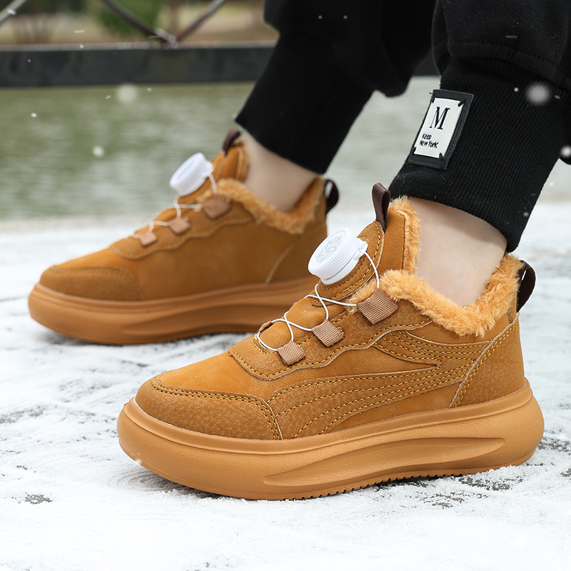 카카 기모 신발 어린이 운동화 겨울 새 가죽 따뜻한 큰면 회전 버클 캐주얼 신발 소년 소녀