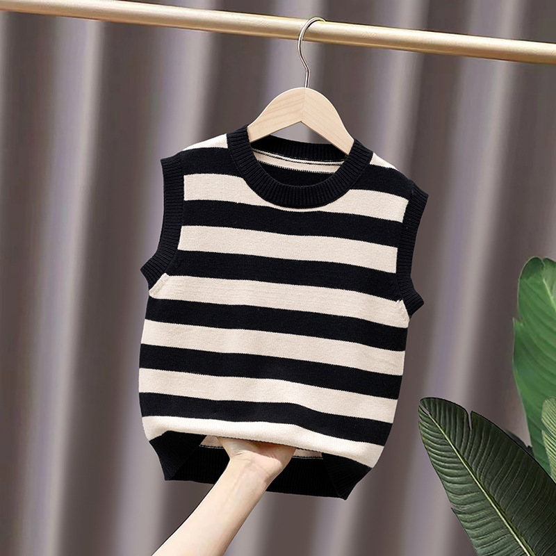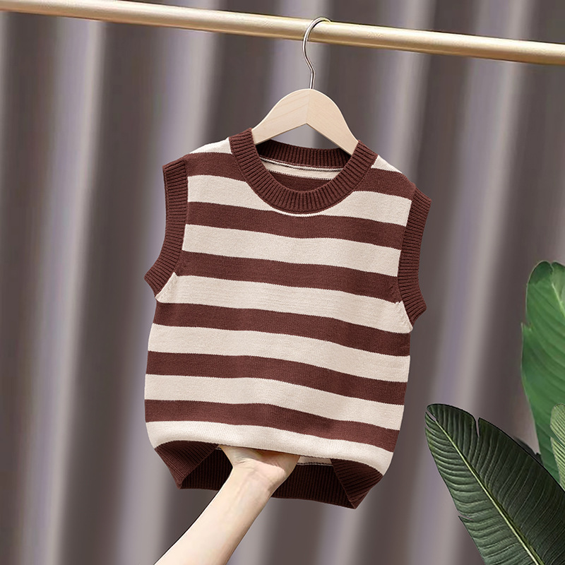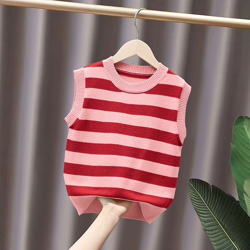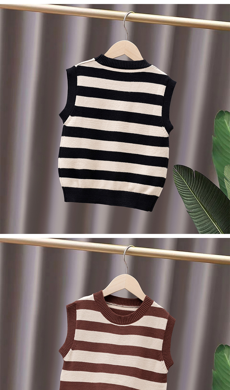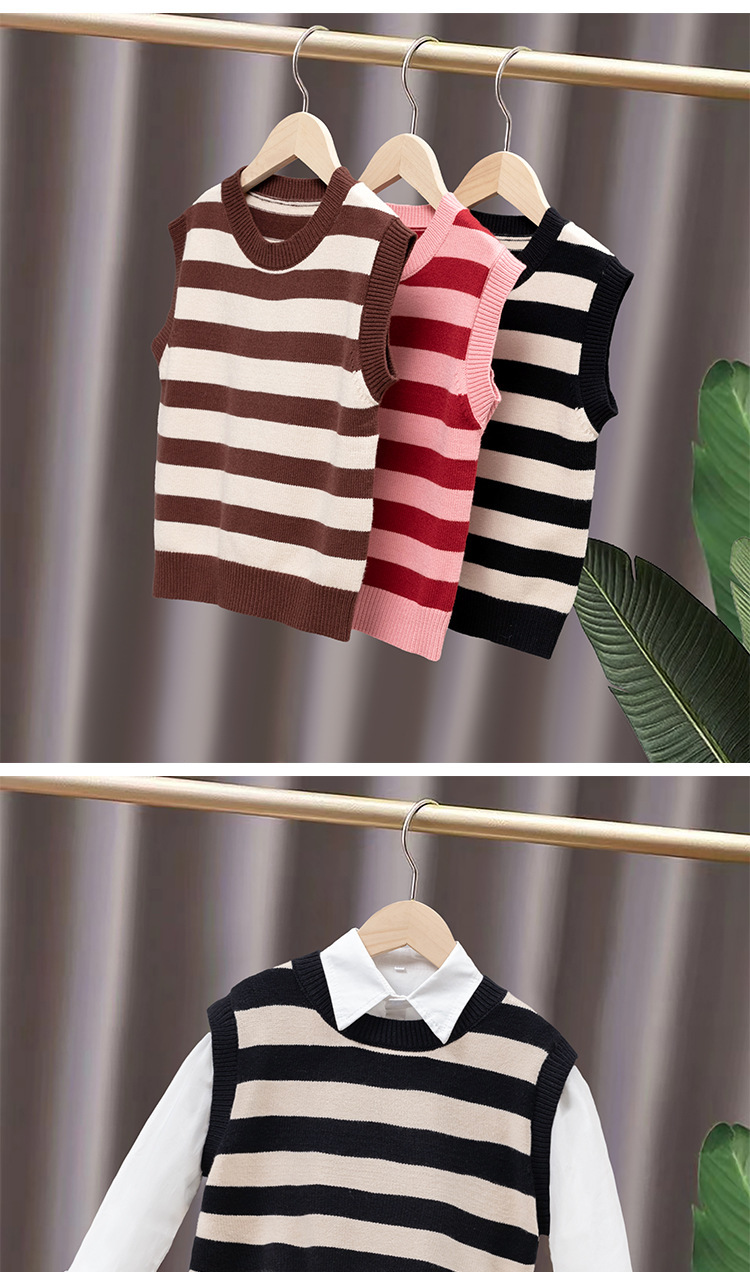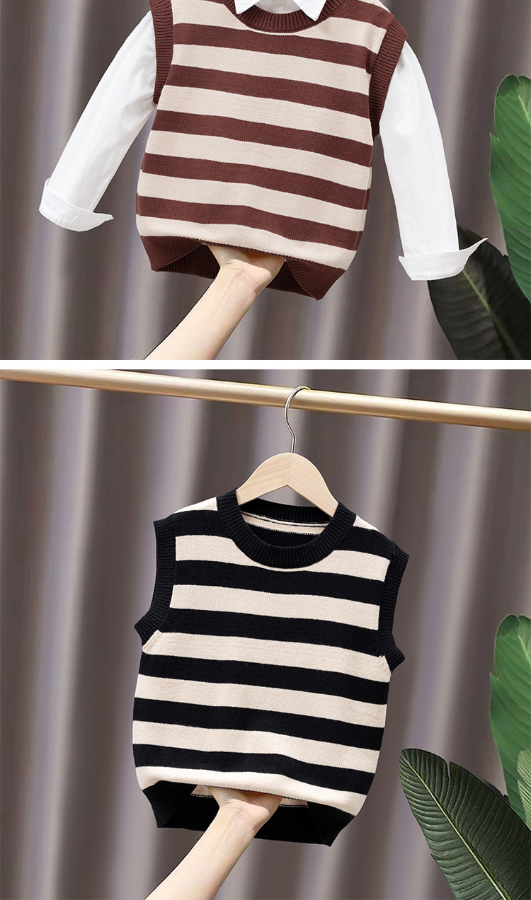 어린이 줄무늬 조끼 크루 넥 조끼 니트웨어 한국 스타일 봄 가을 유행 온라인 기념 조끼 스웨터 소년 소녀