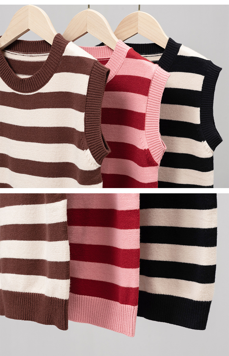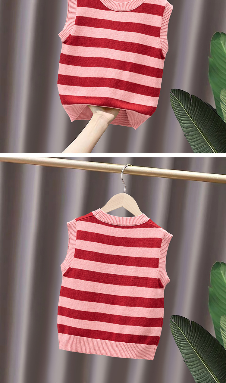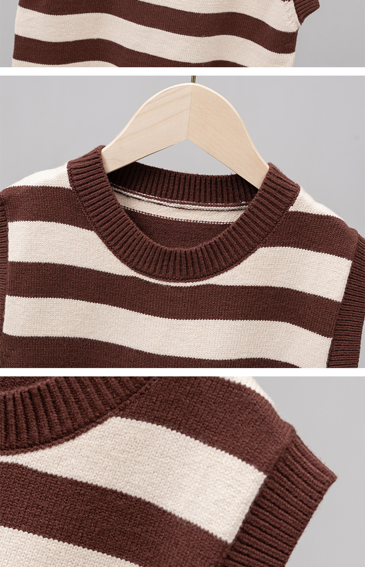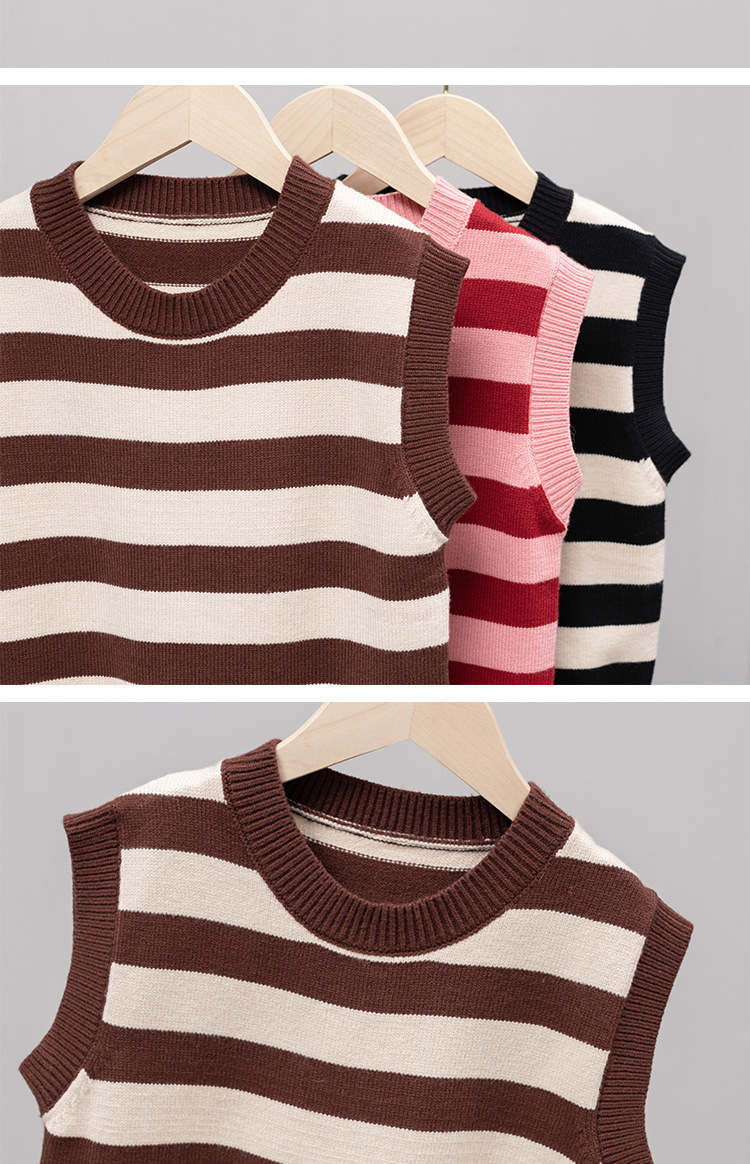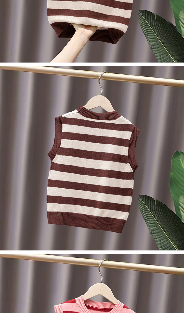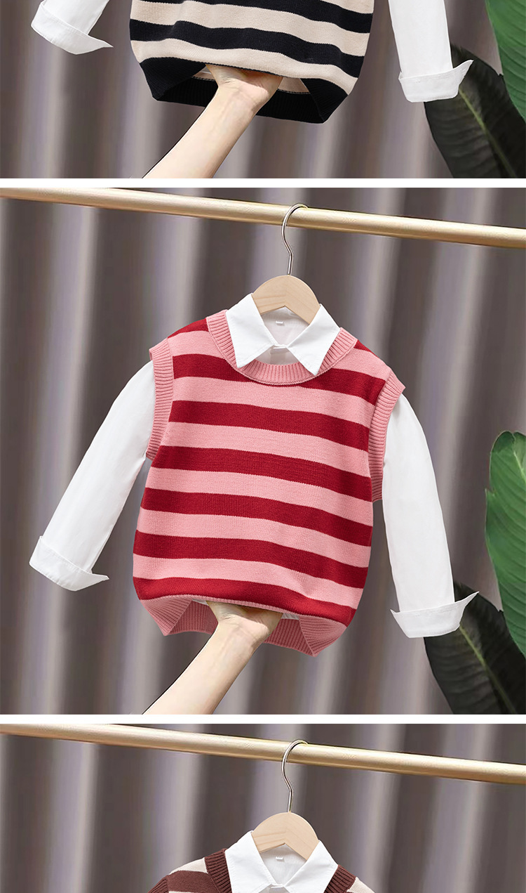 어린이 줄무늬 조끼 크루 넥 조끼 니트웨어 한국 스타일 봄 가을 유행 온라인 기념 조끼 스웨터 소년 소녀