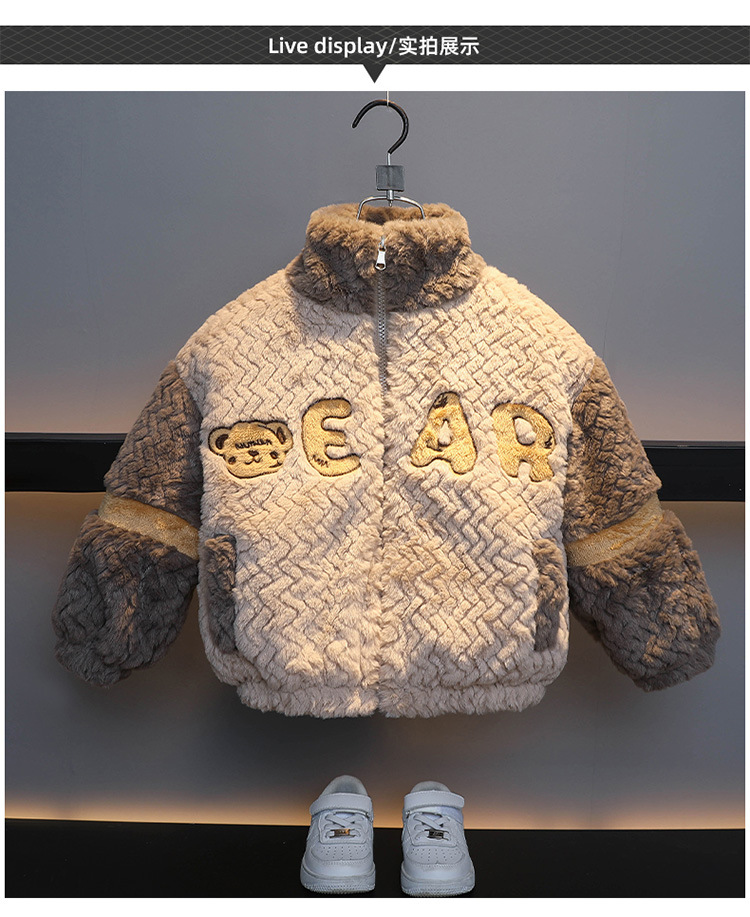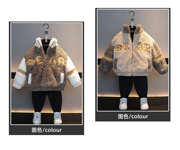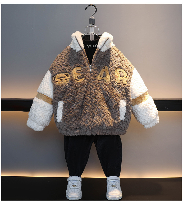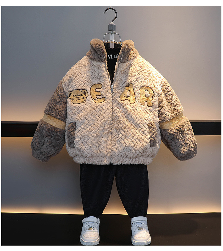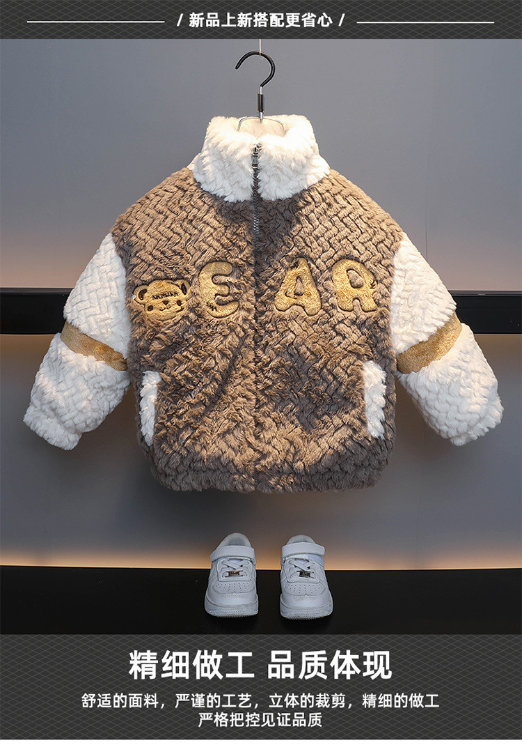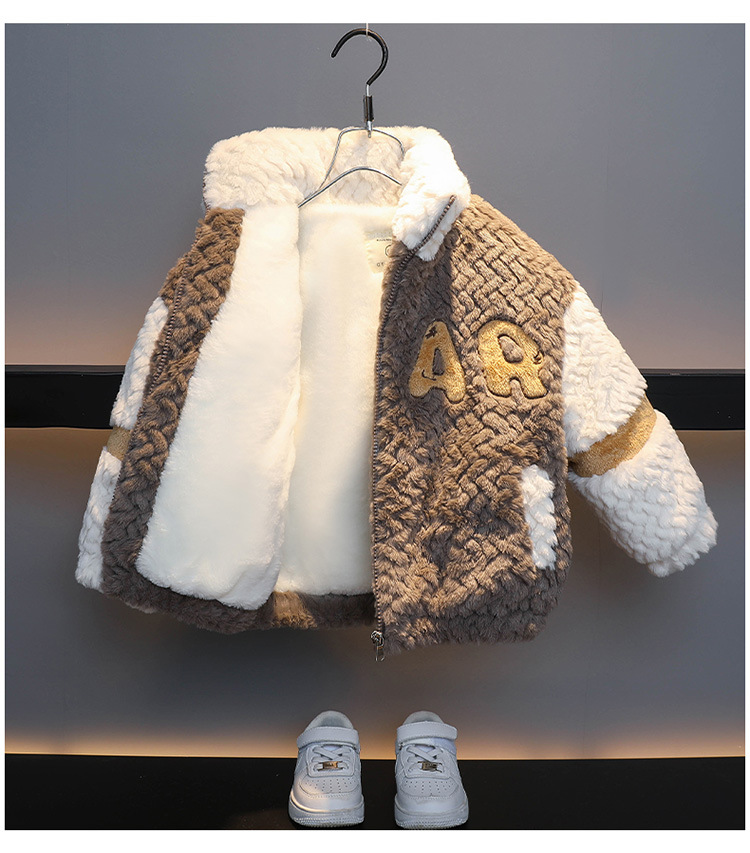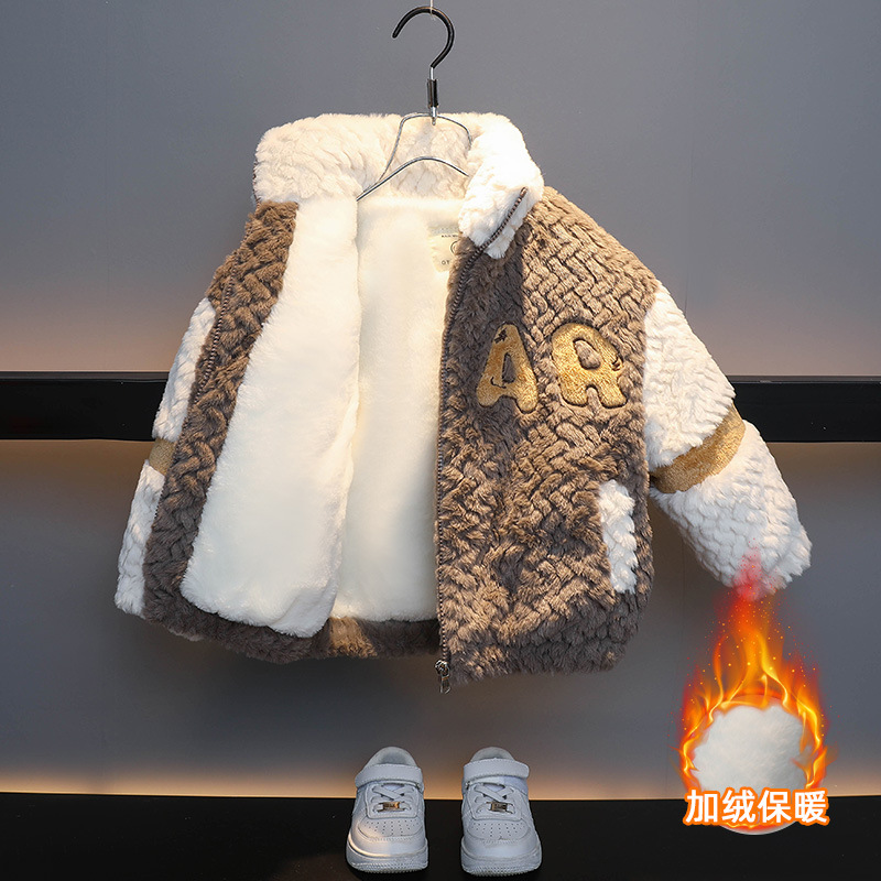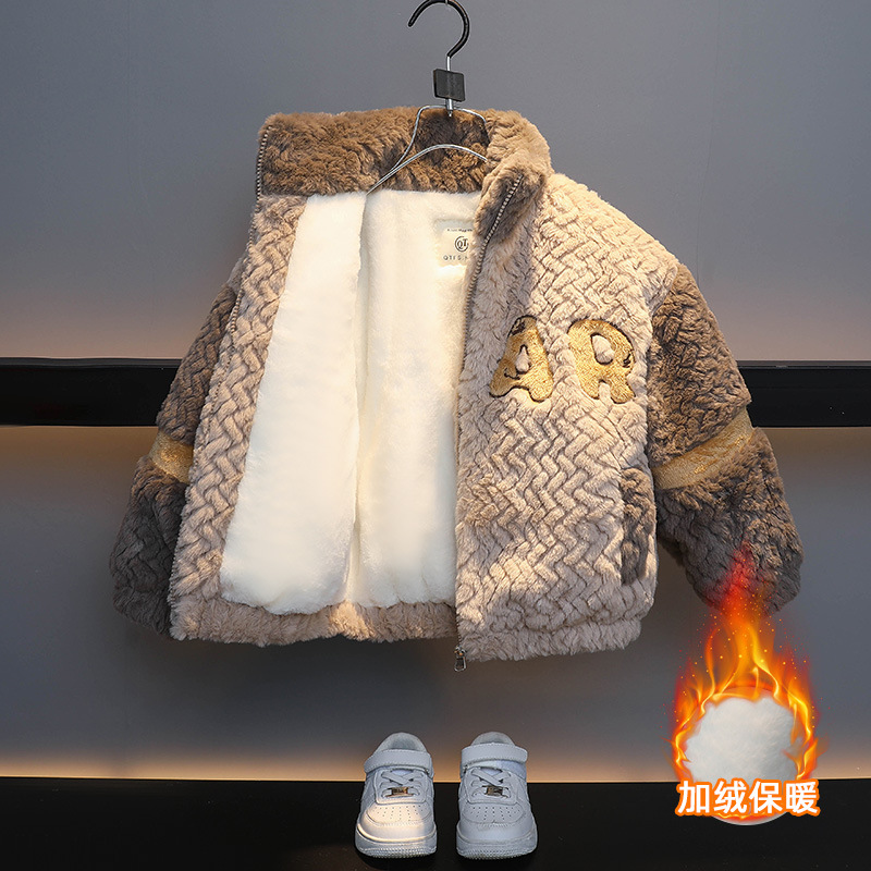 남자 양털 코트 겨울 2024 새로운 스타일 서양식 아기 모직 스웨터 어린이 코트 두꺼운 겨울 코튼 코트스토어 가기