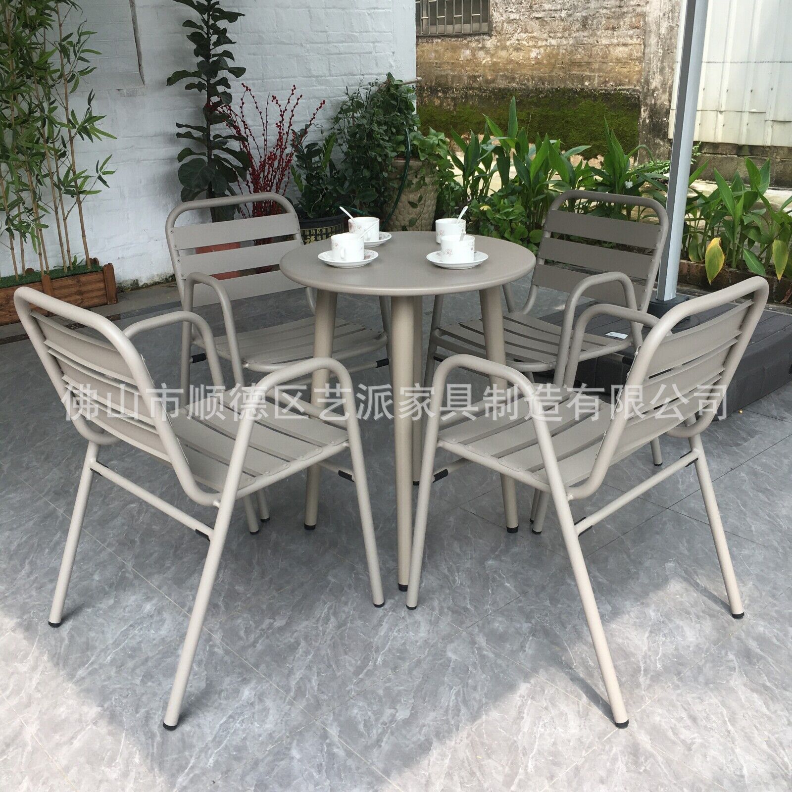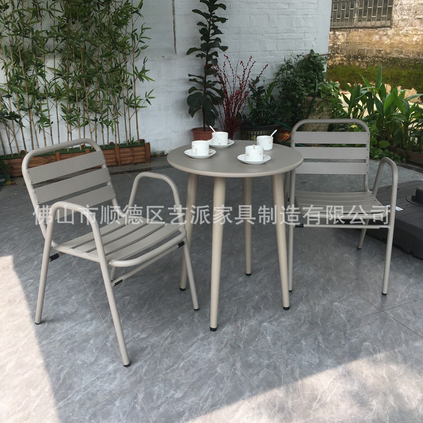 户外网红桌椅套装阳台休闲咖啡奶茶店碳钢圆桌休闲区庭院室外餐桌