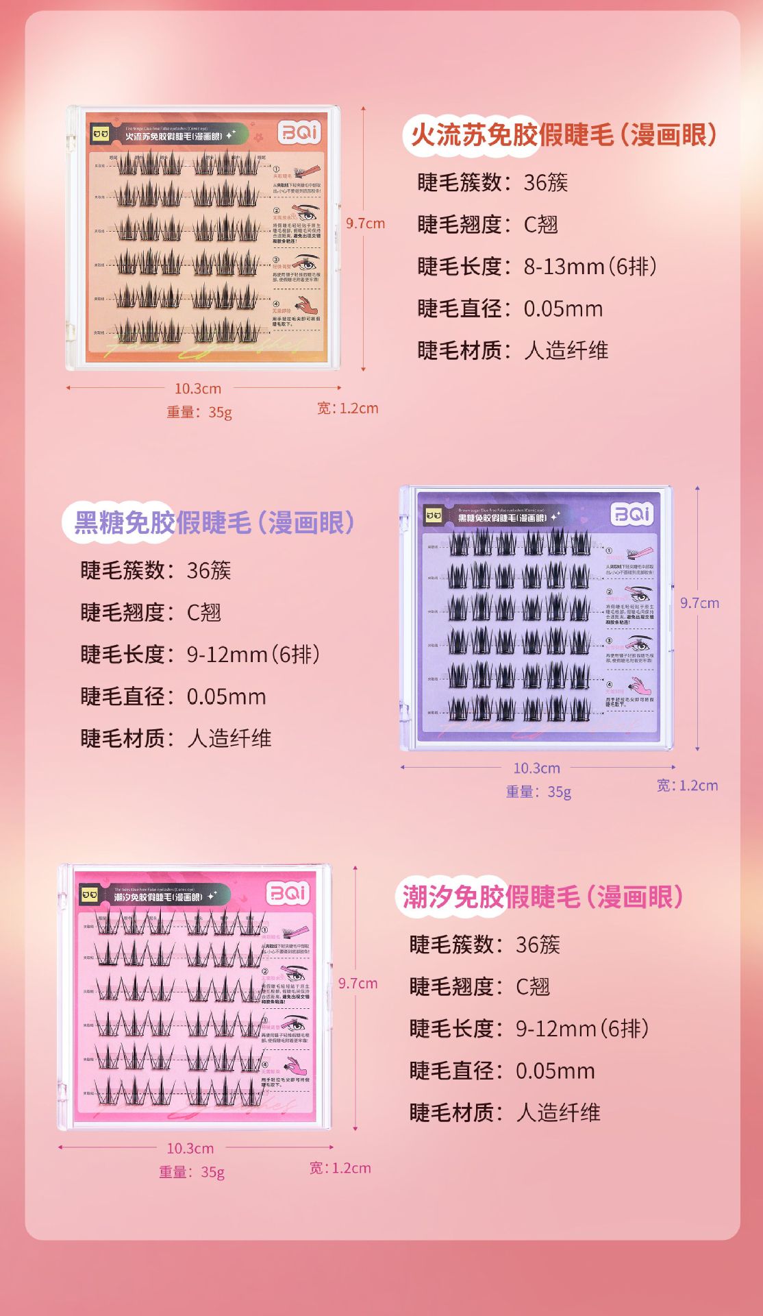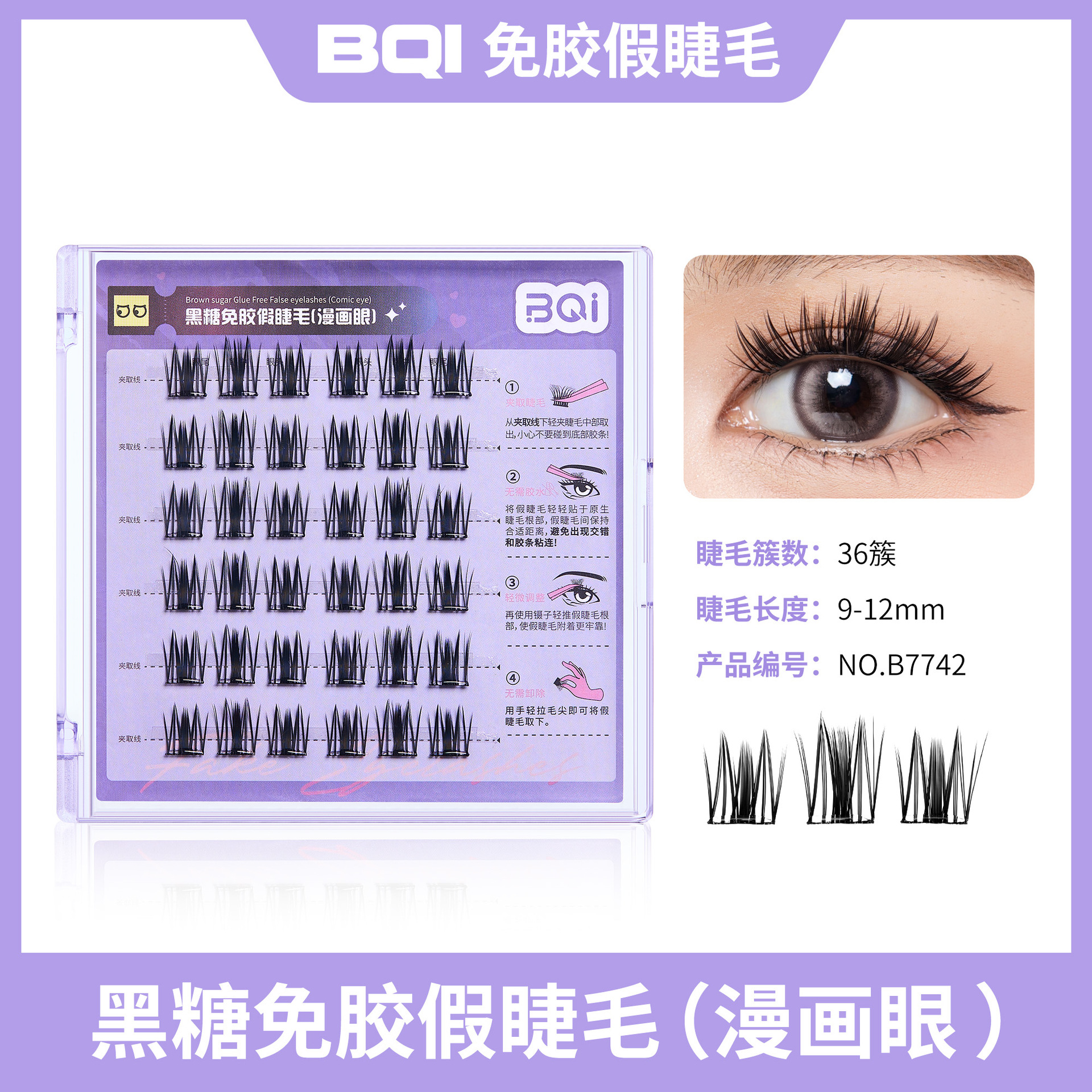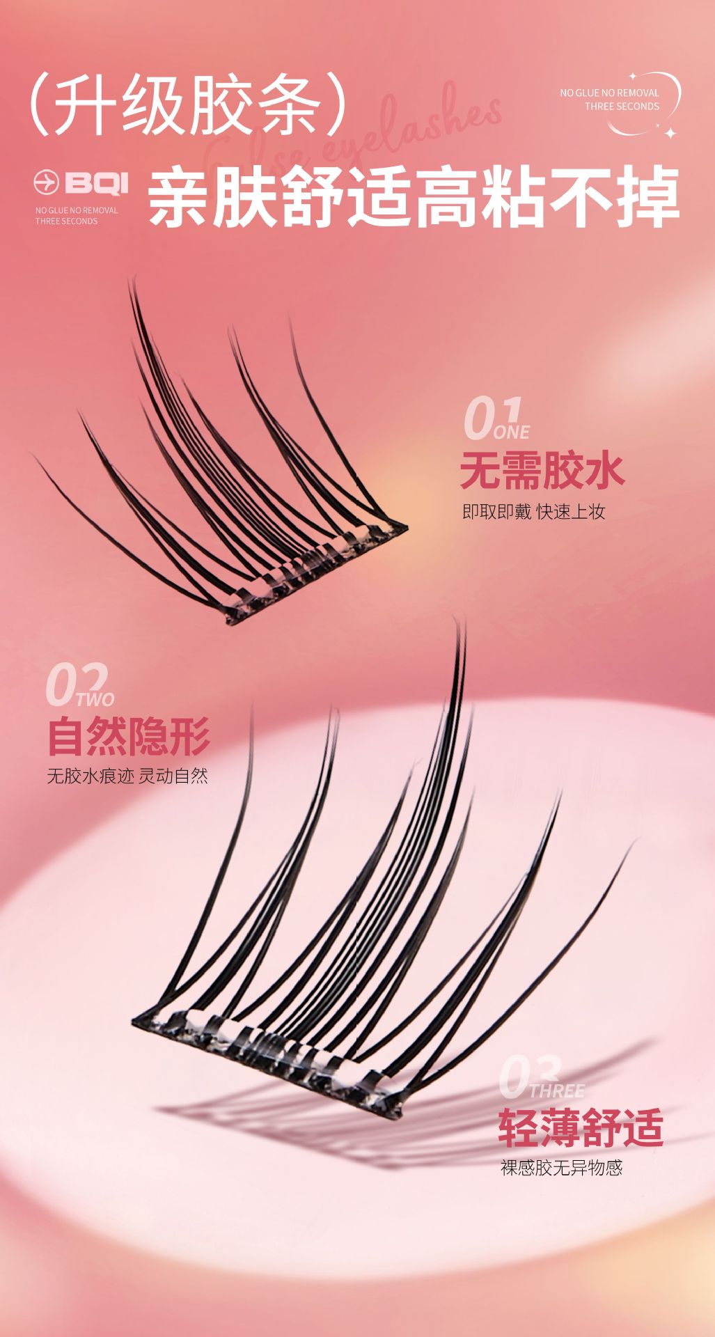 BQI Fire Tassel Glue-Free False Eyelashes 초보자 스테레오 만화 속눈썹 메이크업 천연 어머니 센스 거짓 속눈썹 3 개 클러스터