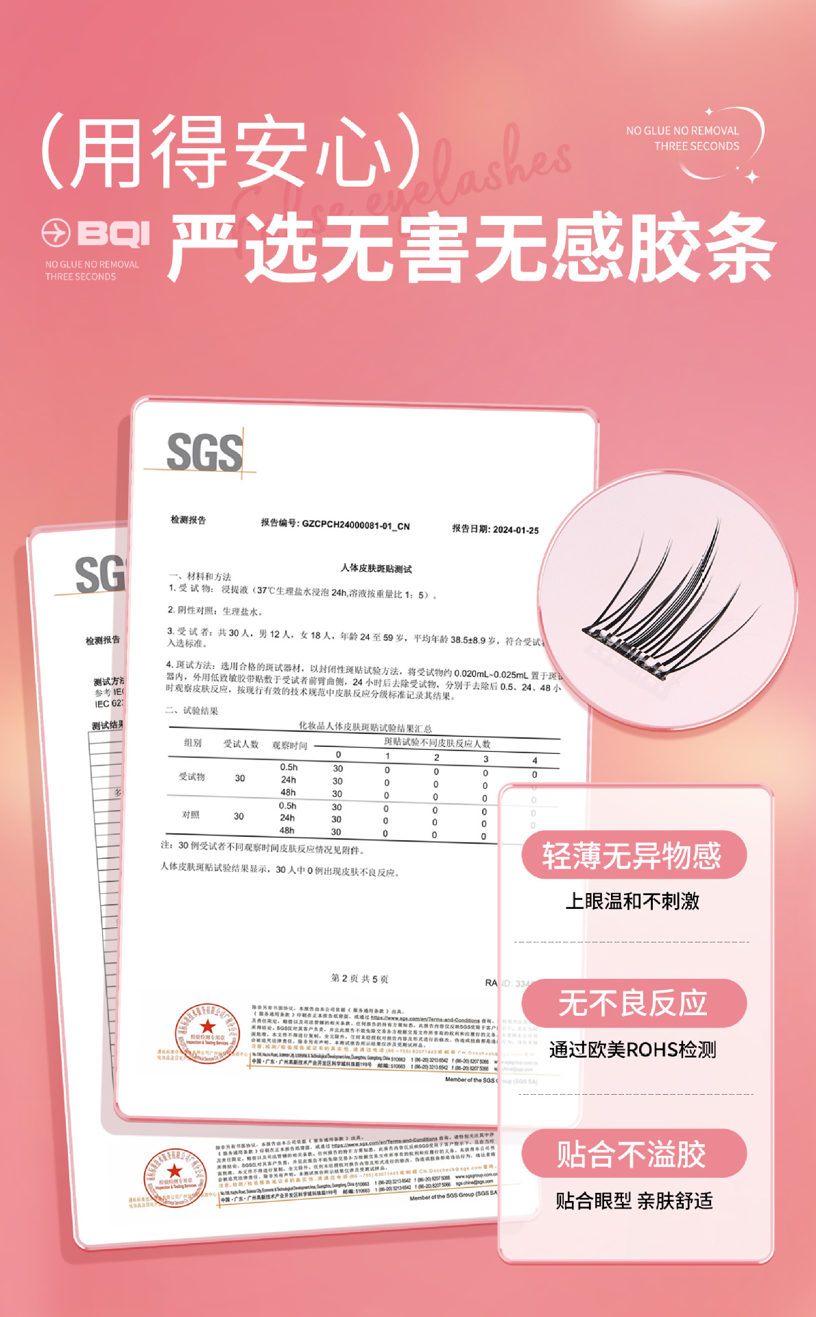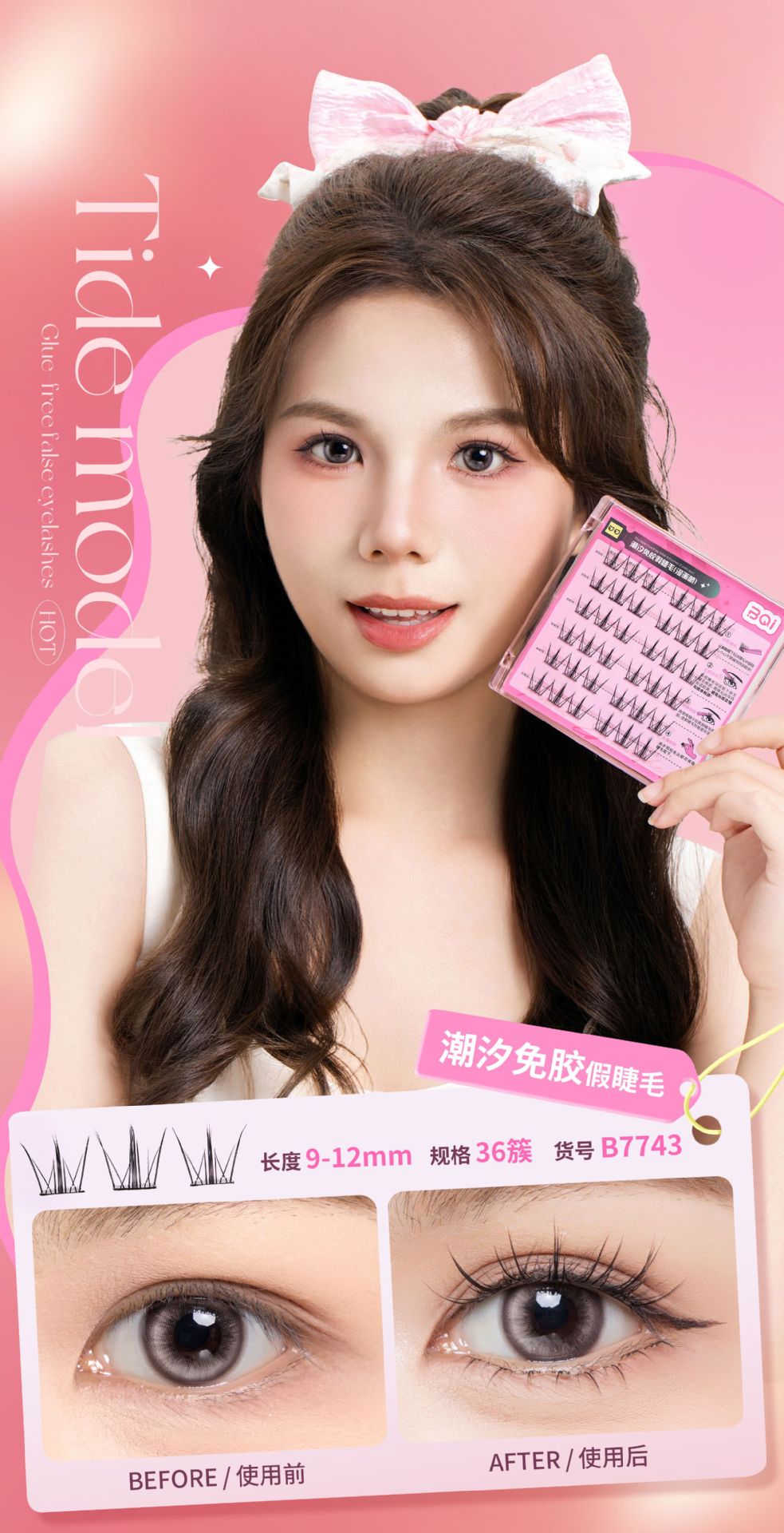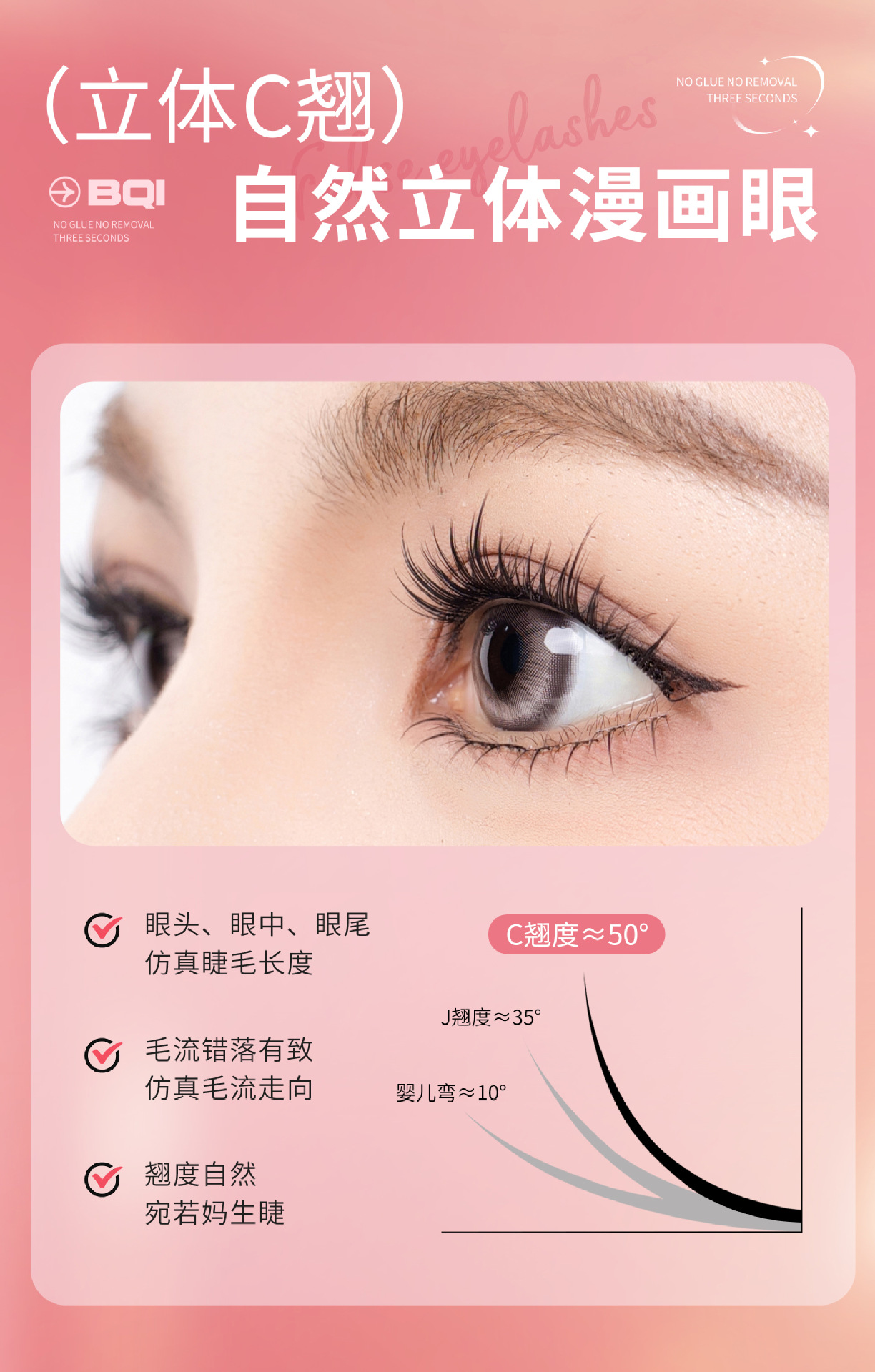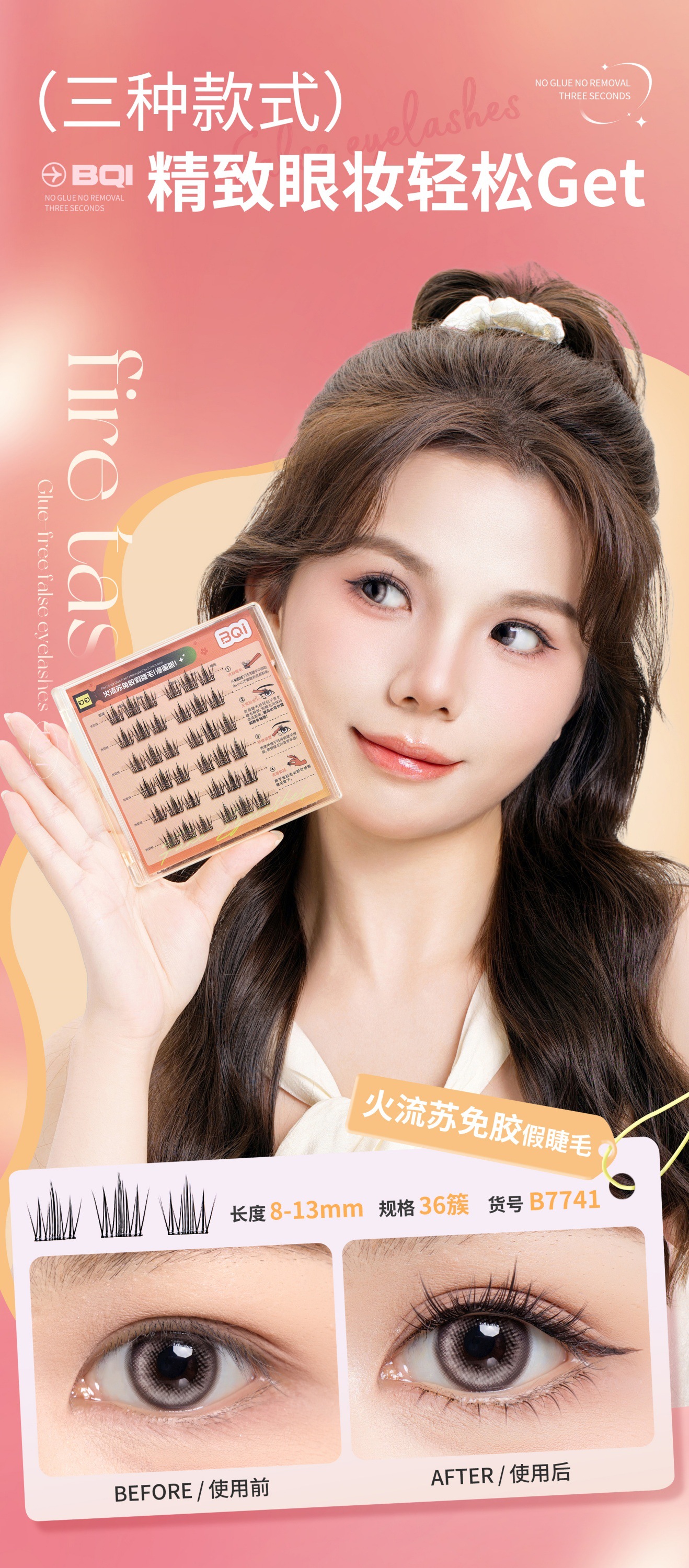 BQI Fire Tassel Glue-Free False Eyelashes 초보자 스테레오 만화 속눈썹 메이크업 천연 어머니 센스 거짓 속눈썹 3 개 클러스터