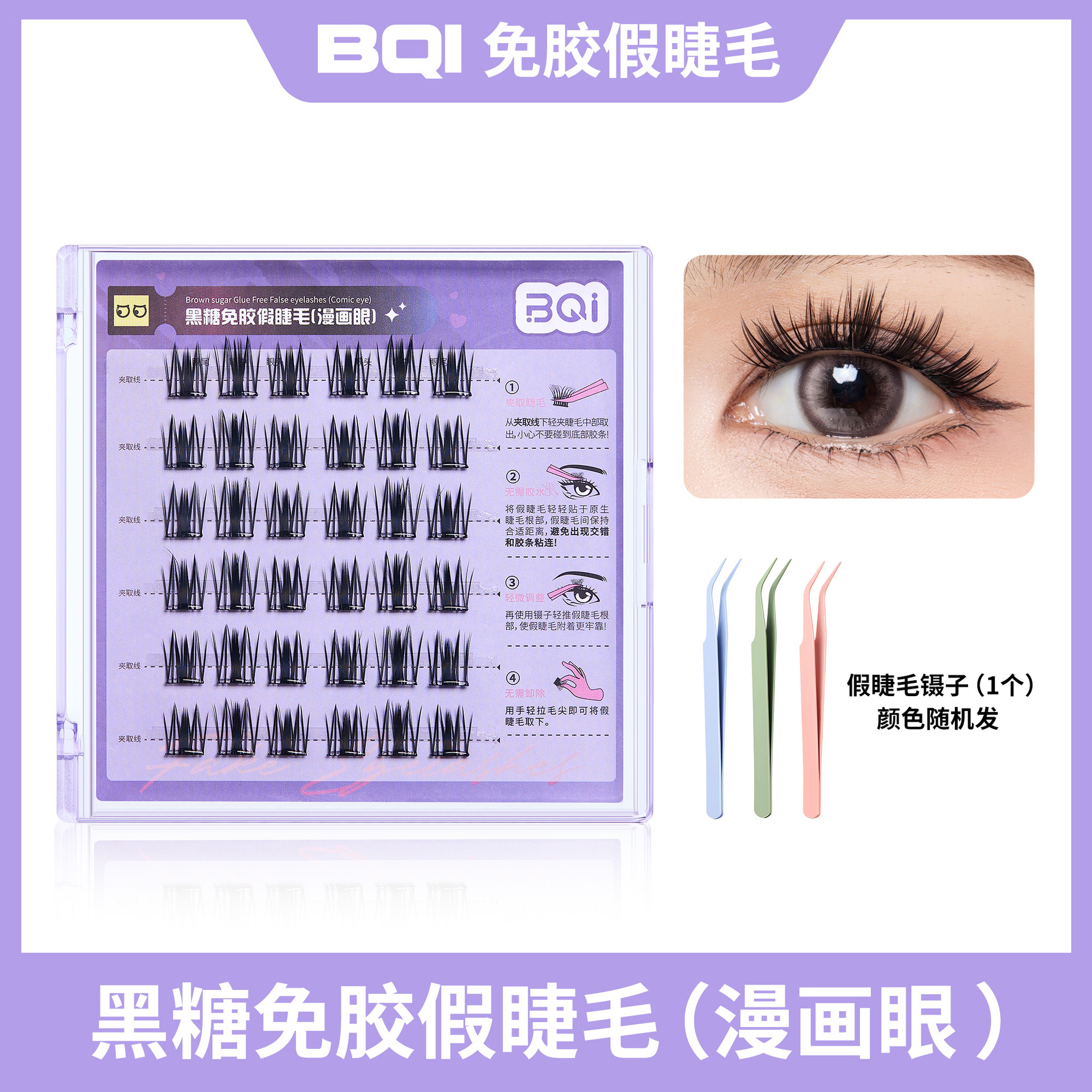 BQI Fire Tassel Glue-Free False Eyelashes 초보자 스테레오 만화 속눈썹 메이크업 천연 어머니 센스 거짓 속눈썹 3 개 클러스터스토어 가기