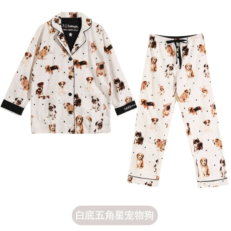 Yuyue PJS 가을과 겨울 두꺼운 샌딩 여성 홈 의류 잠옷은 코튼 문 옷을 입을 수 있습니다 긴 소매 바지